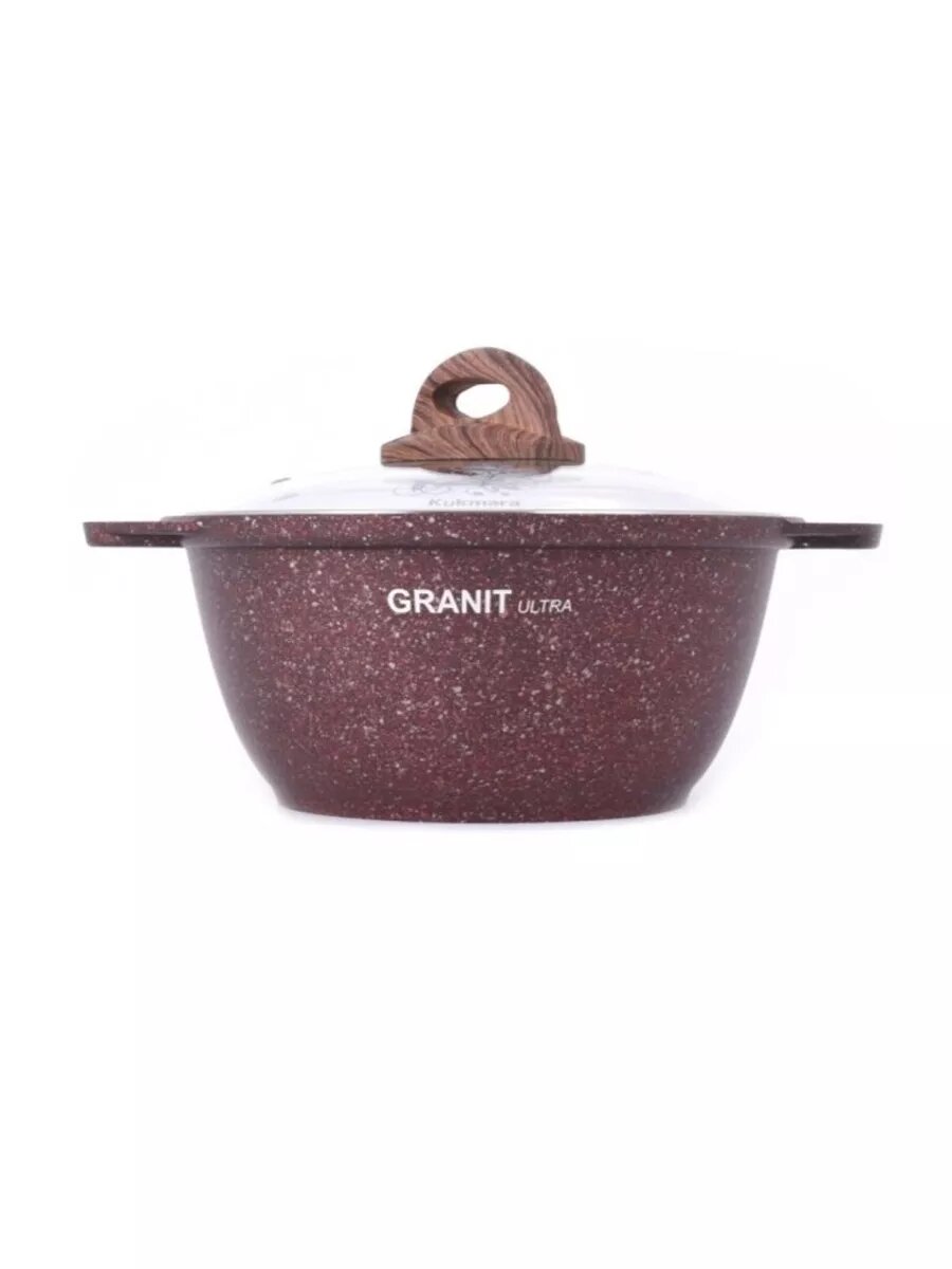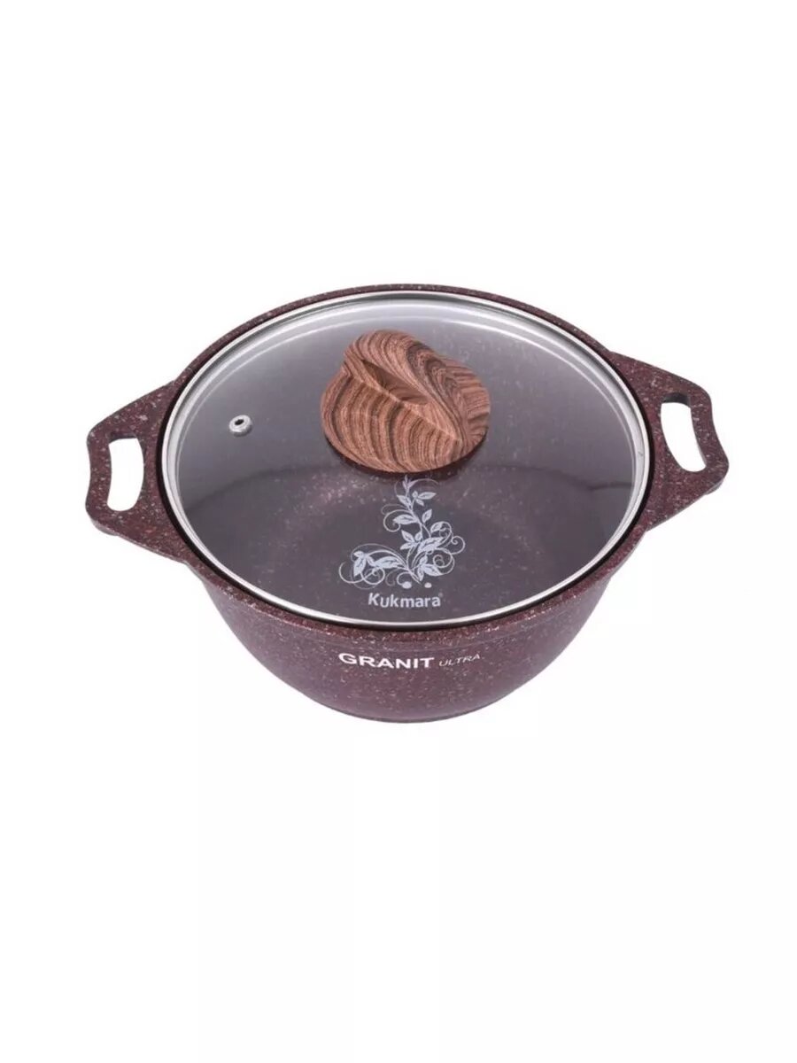 Кастрюля KUKMARA Granit ultra, 8 л, d=30 см, h=25 см, антипригарное покрытие, коричневая
