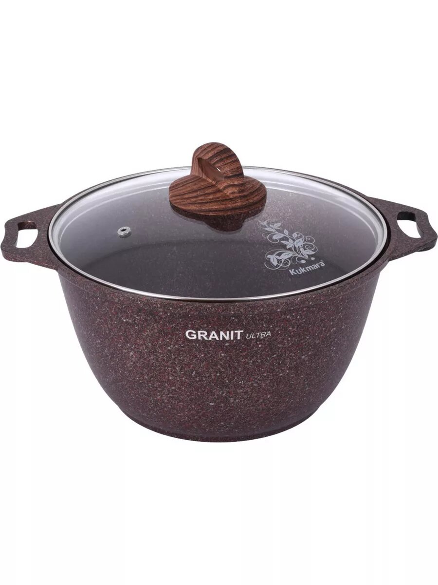 Кастрюля KUKMARA Granit ultra, 8 л, d=30 см, h=25 см, антипригарное покрытие, коричневая