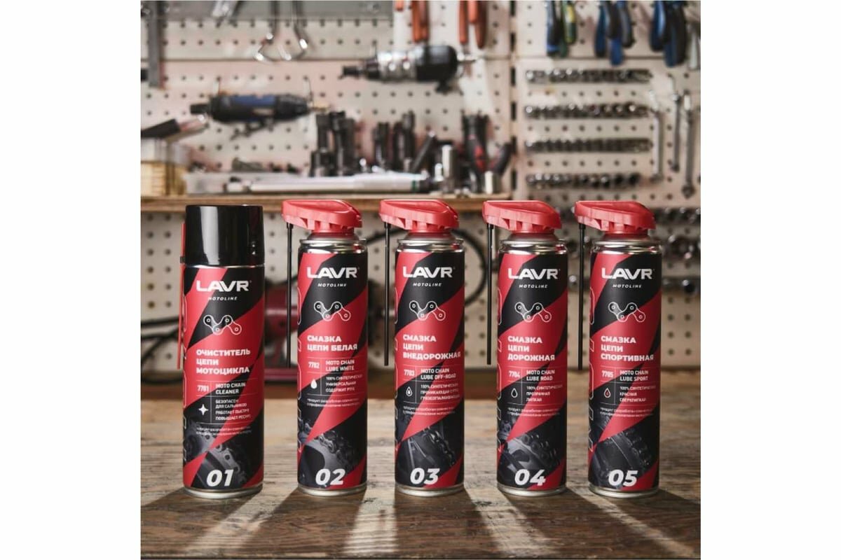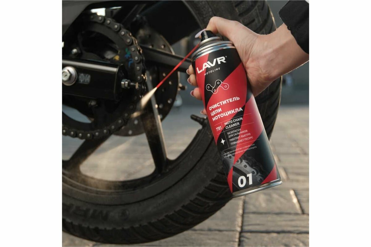 LAVR LN7701 Очиститель цепей 650мл - очиститель цепи мотоцикла, подходит для всех типов приводных цепей мото- и велотехники, безопасен для O, X и Y сальников, аэрозоль