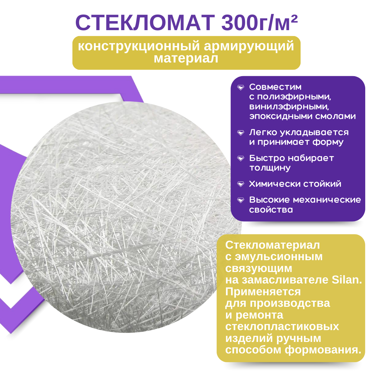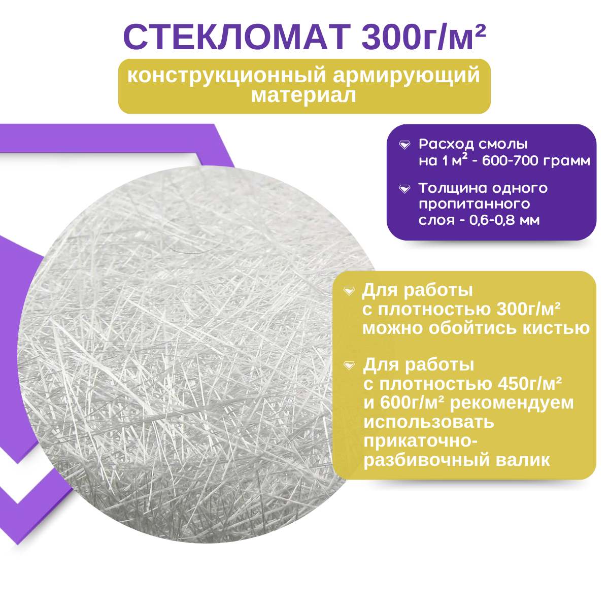 Стекломат эмульсионный 300г упаковка 5м погонных Даймонд Композит интересное:
