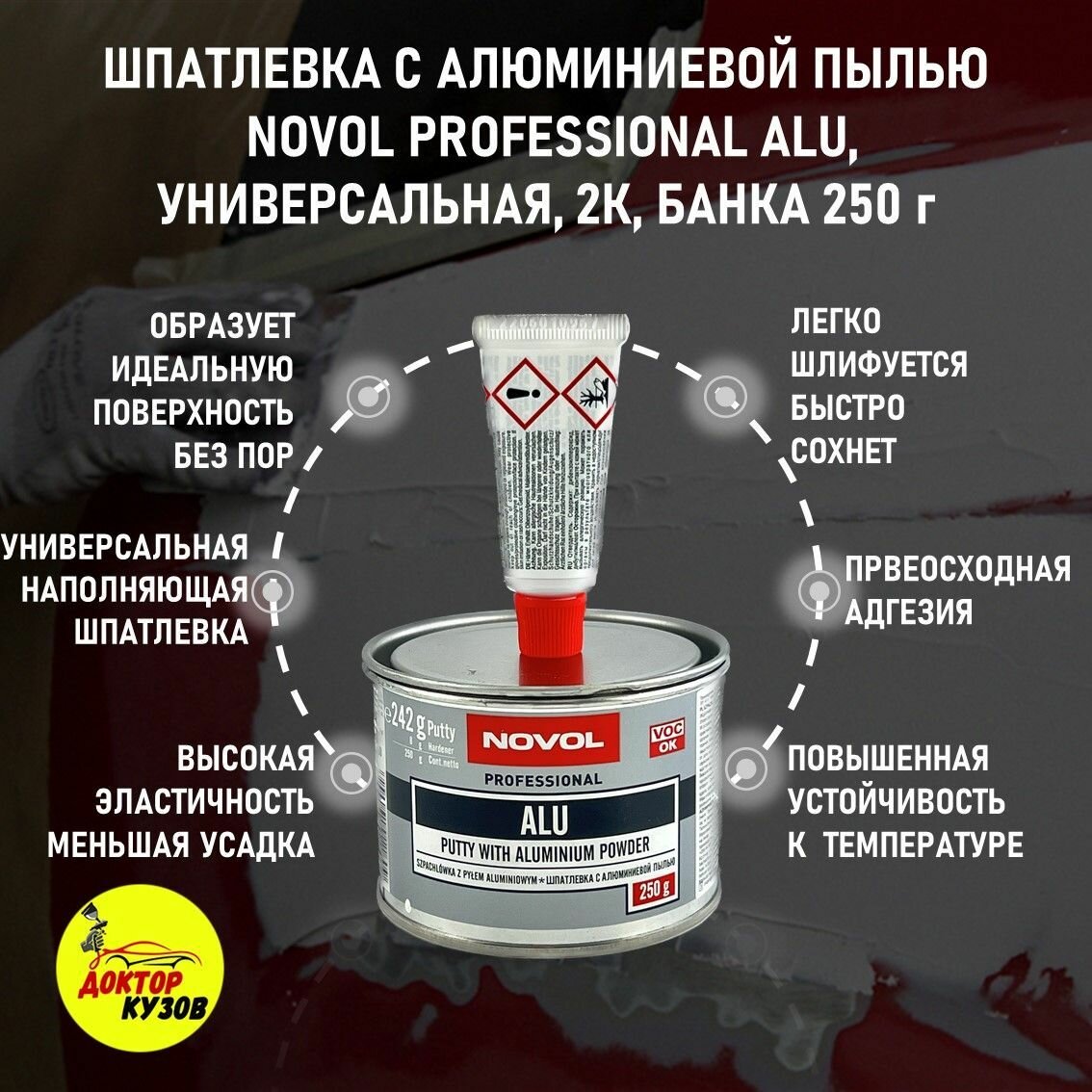 Шпатлевка автомобильная / Шпатлевка автомобильная с алюминиевой пылью NOVOL PROFESSIONAL ALU 250 г + отвердитель, 1160 интересное: