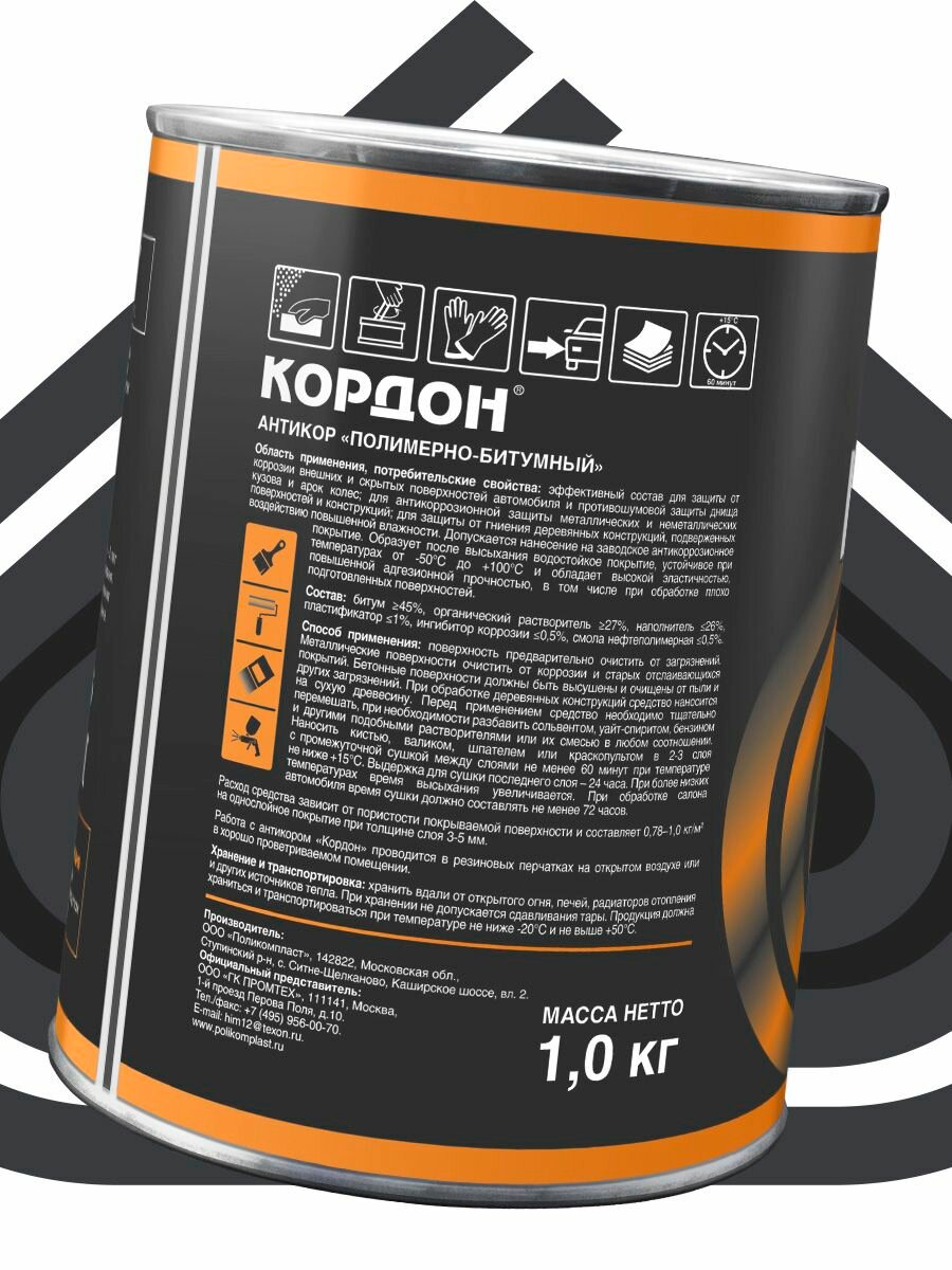 Антикор Кордон 1кг., антикоррозионная мастика полимерно-битумная / средство защиты для кузова, арок, днища и скрытых полостей