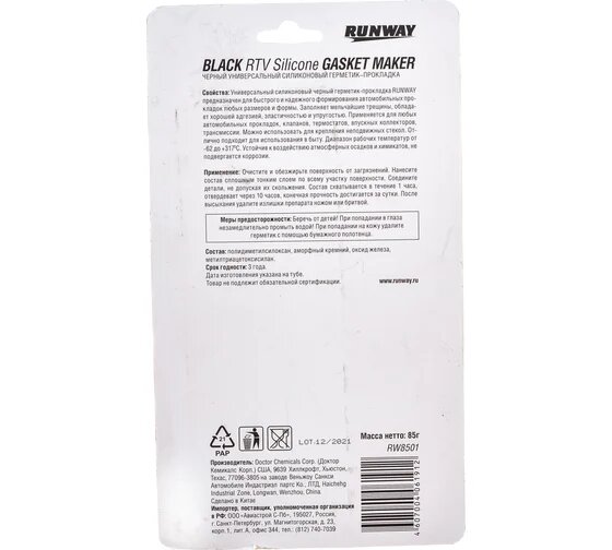 RUNWAY RW8501 Силиконовый герметик-прокладка черный 85г 1шт