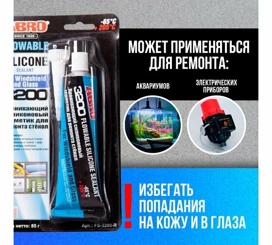СохранитьABRO Герметик силиконовый проникающий для ремонта стекол 85 г FS-3200-R интересное: