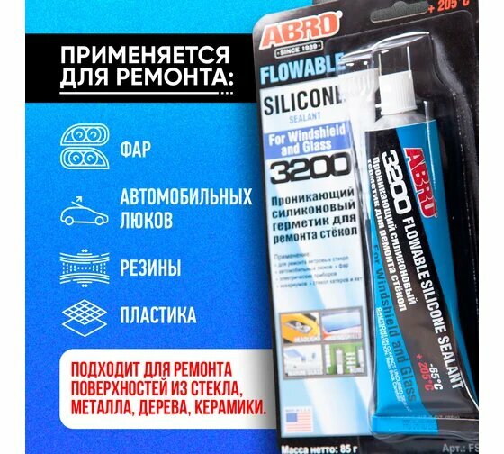 Силиконовый проникающий герметик для ремонта стекол ABRO INDUSTRIES INC Abro 85 г FS-3200