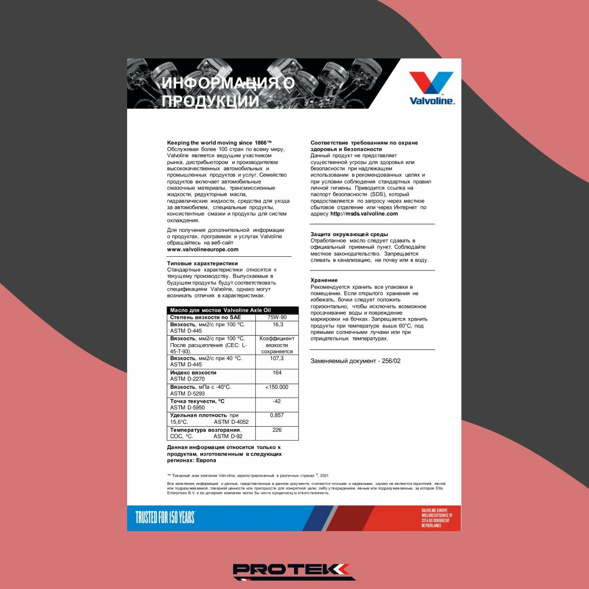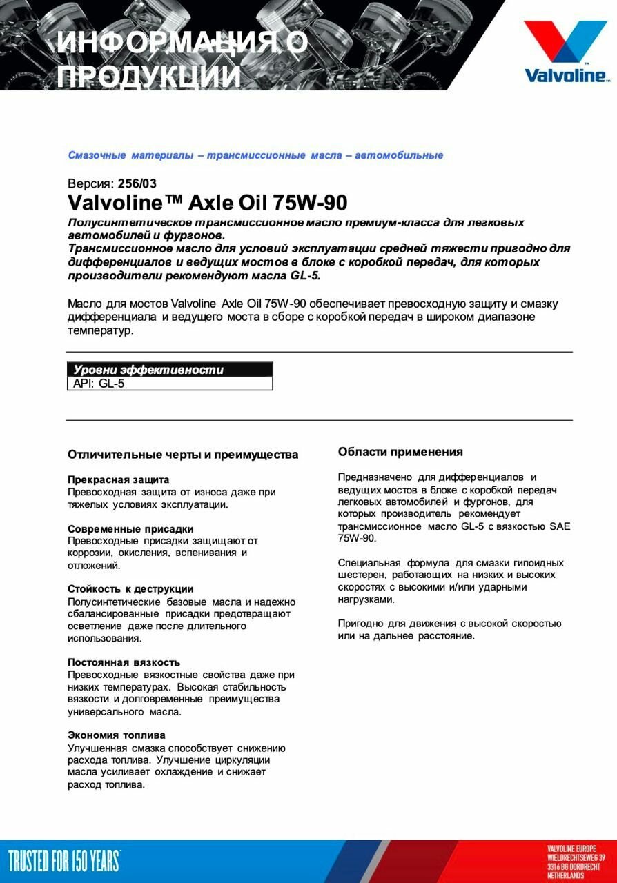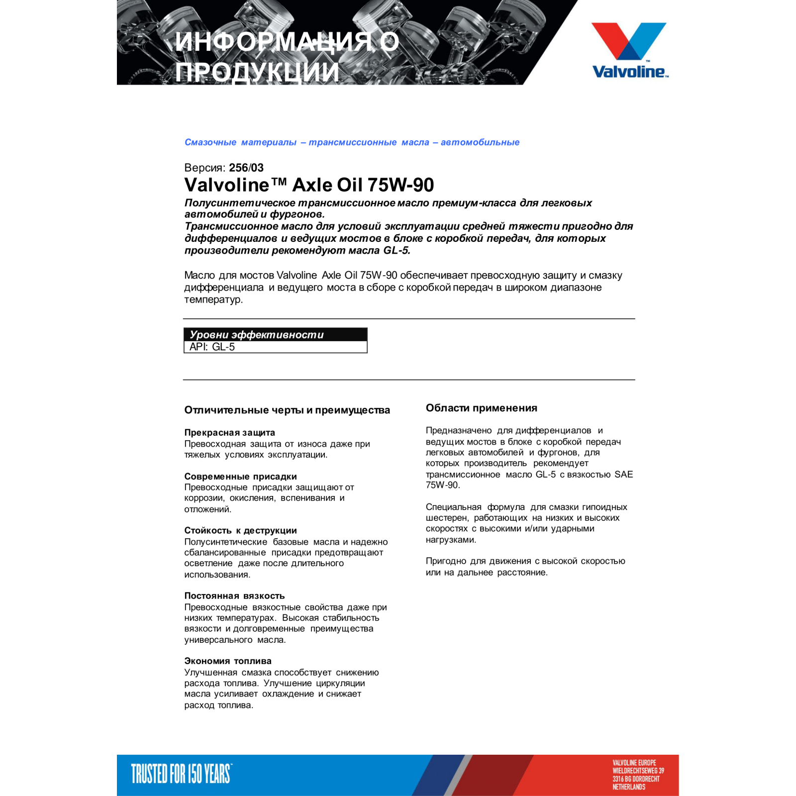VALVOLINE 866890 AXLE OIL 75W-90 1 масо трансмиссионное/ 1L интересное: