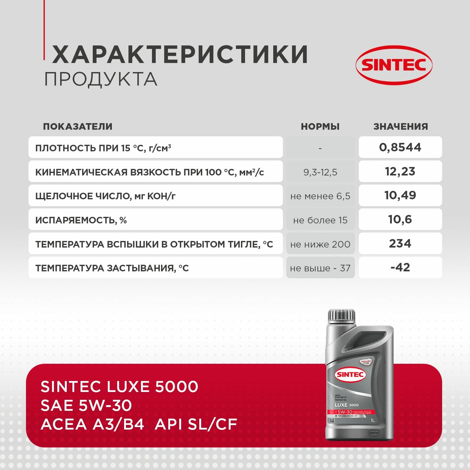 масло sintec 5w30 luxe 5000 api sl/cf 4л п/с 801980/600245