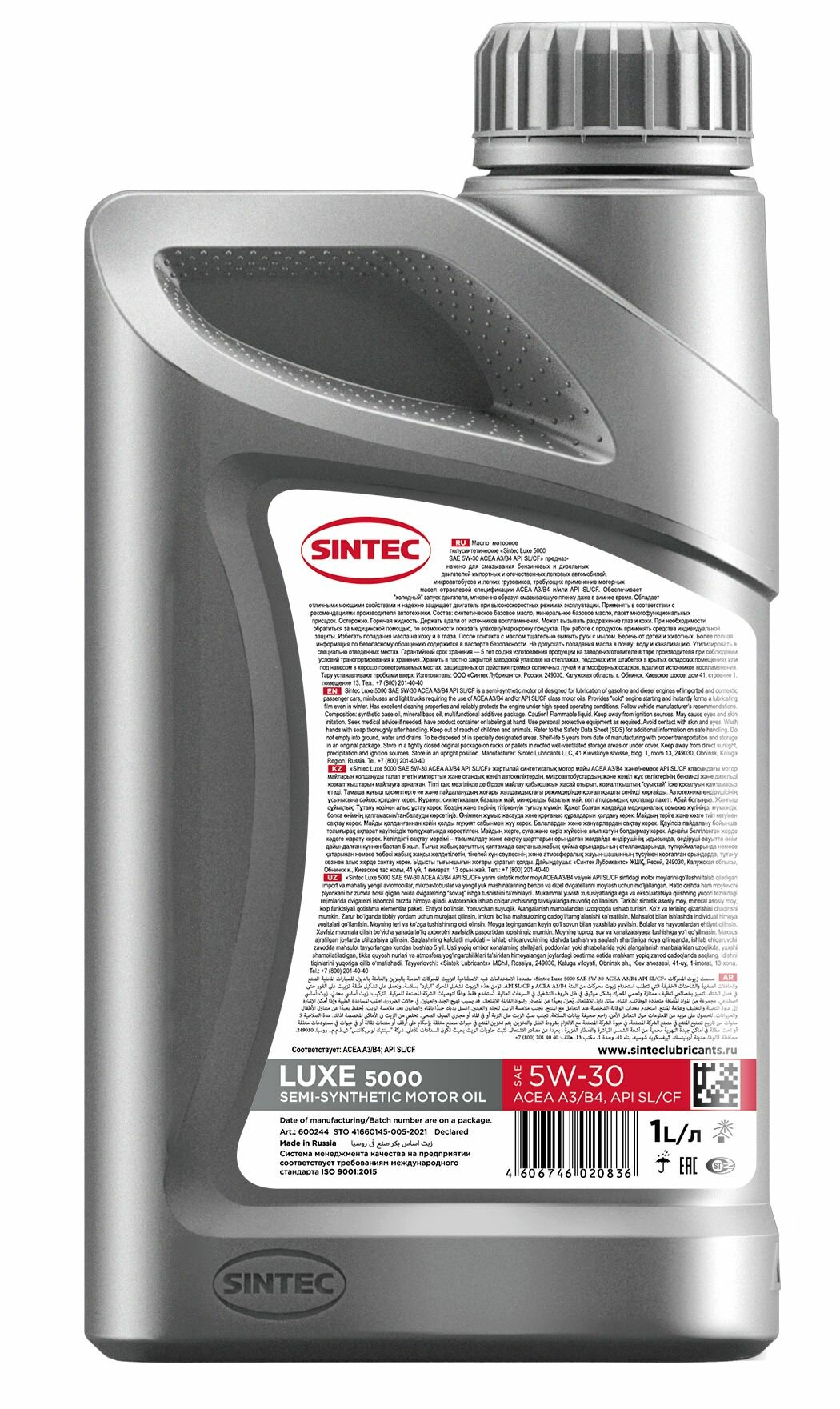 Sintec Luxe 5000 5W-30 SL/CF 4л полусинтетика (600245/801980)