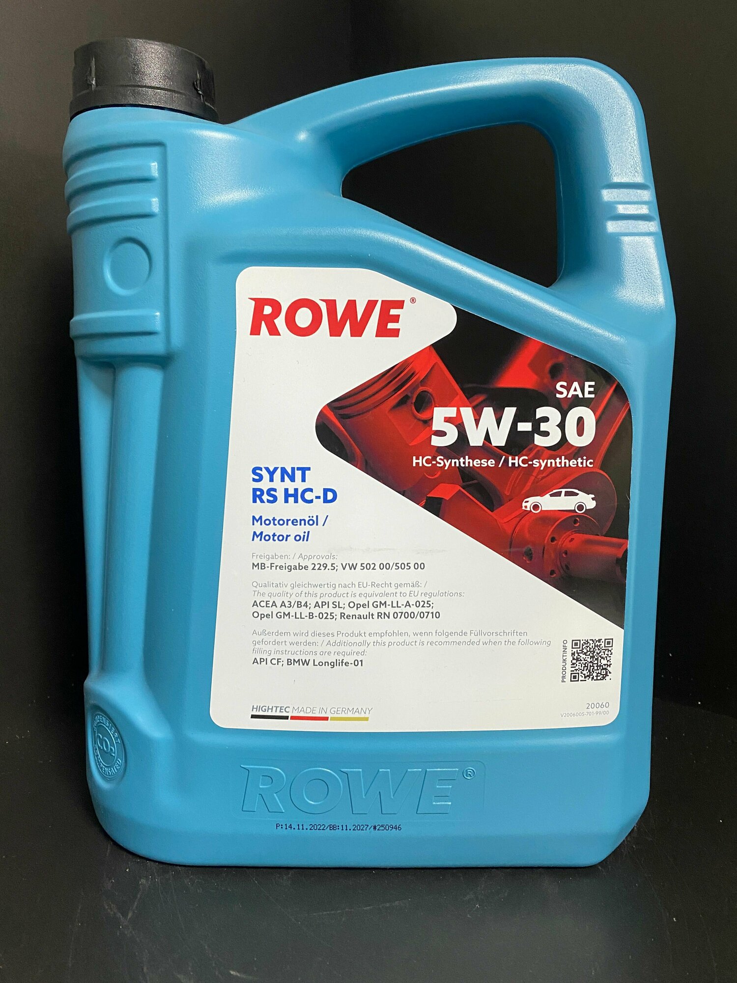 Моторное масло ROWE HIGHTEC SYNT RS HC-D SAE 5W-30 NEW 5л для бензиновых двигателей, для дизельных безсажевых фильтров (опель, фольксваген, бмв, мерседес и т.д)