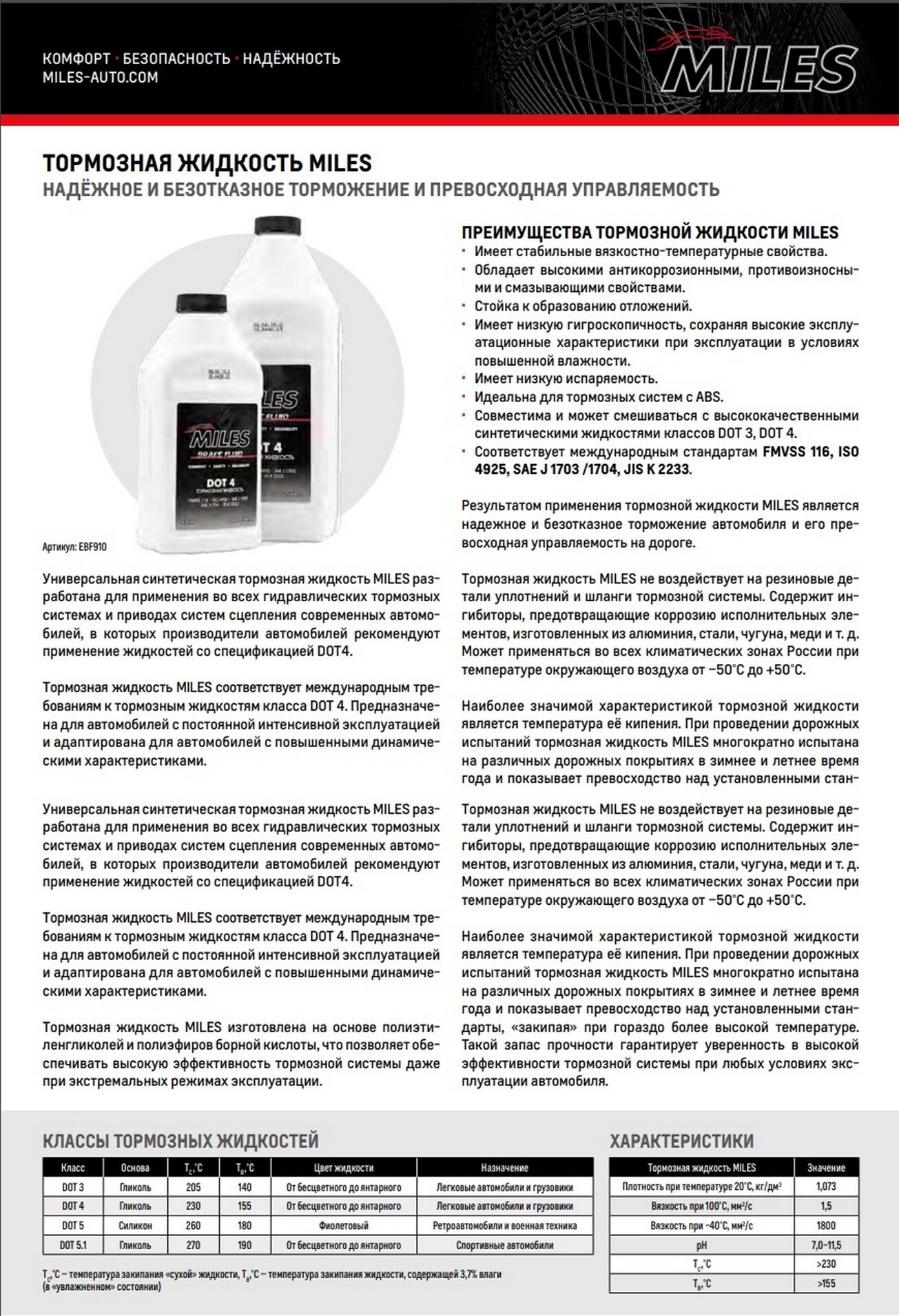 СохранитьЖидкость тормозная MILES DOT 4 1л Brake Fluid интересное:
