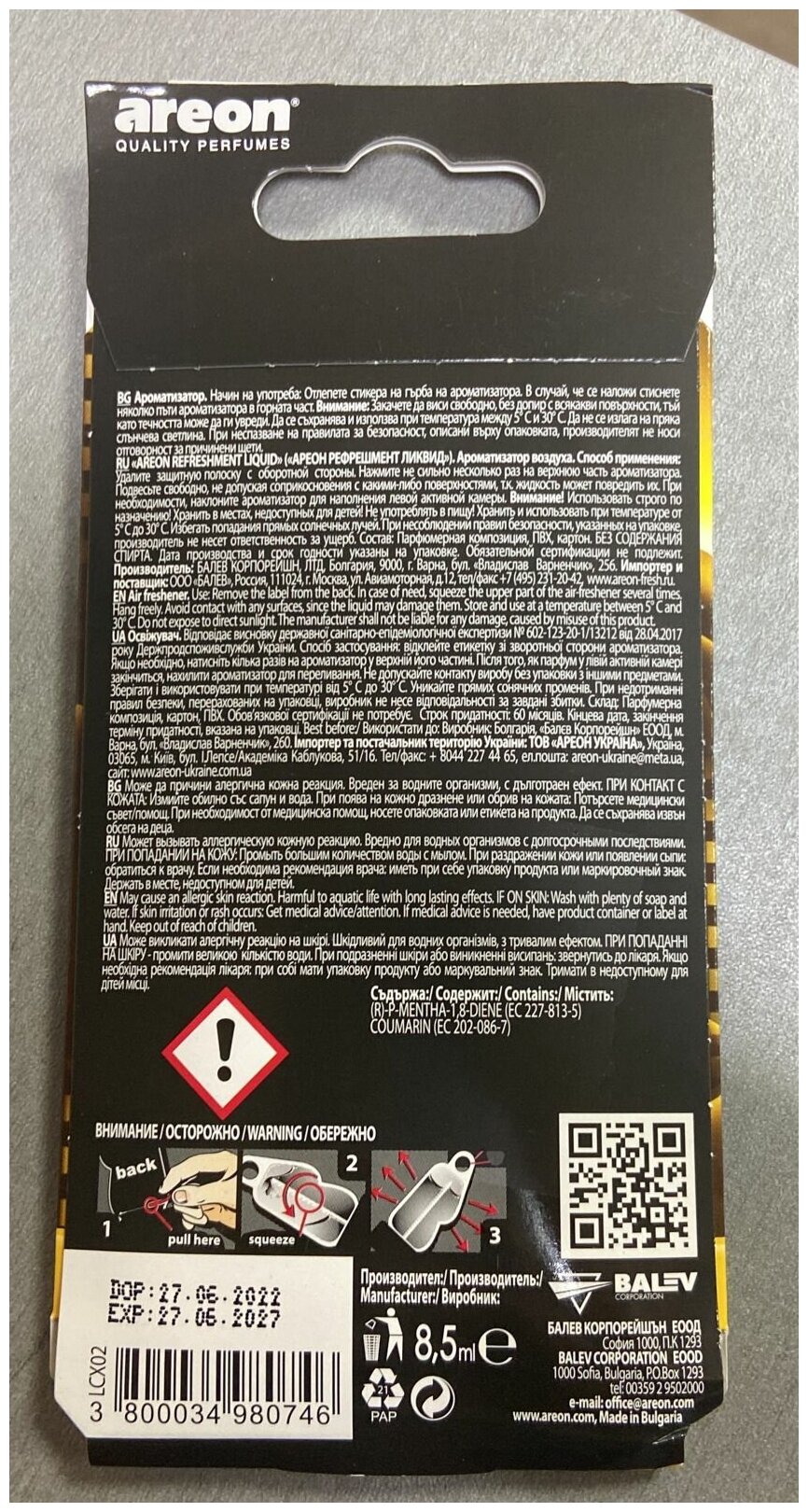 Ароматизатор в машину подвесной, гелевый, Areon, Refreshment Liquid, New Car X-version, 704-LCX--04