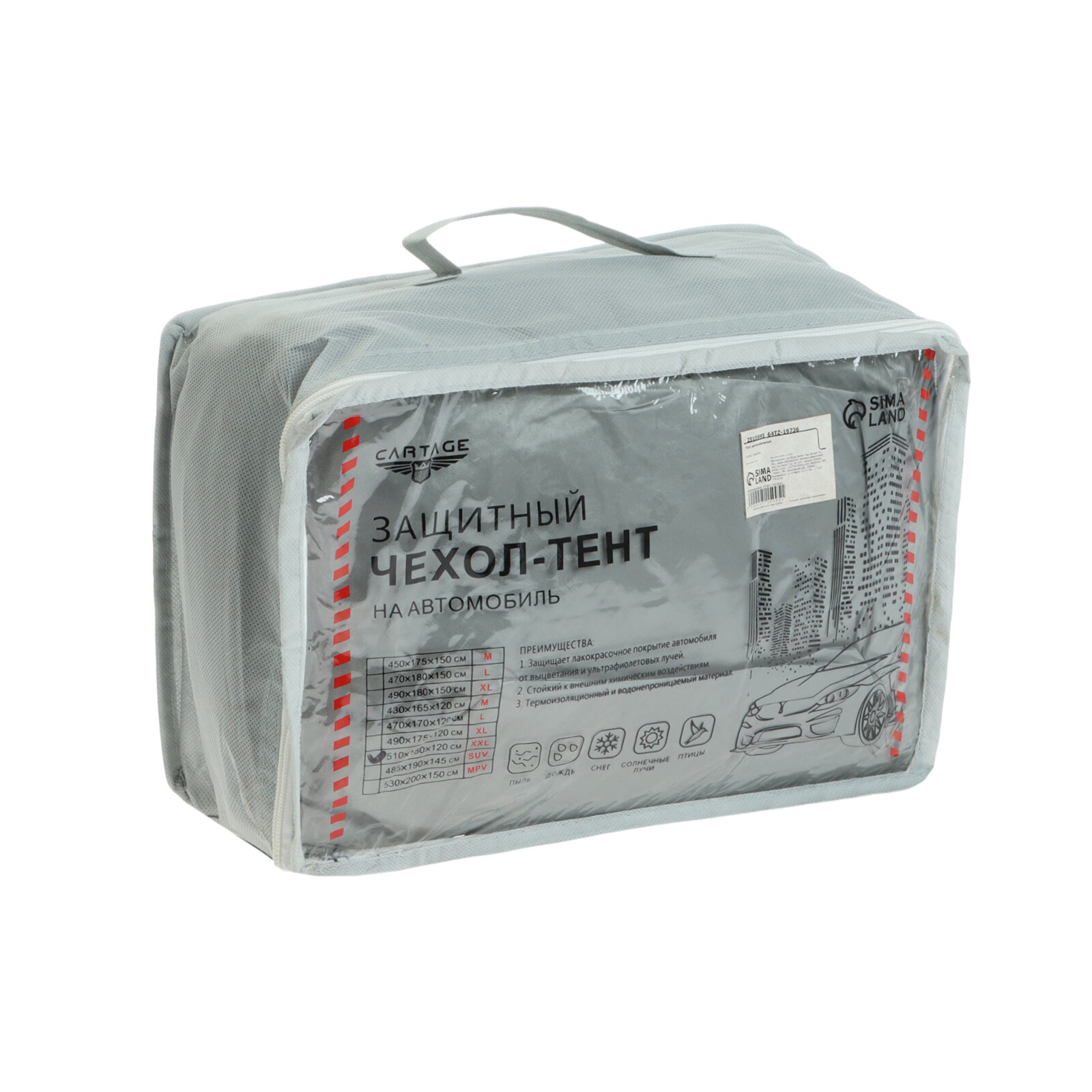 Купить Тент автомобильный Cartage водонепроницаемый, полиэстер, "XXL" , 510х180х120 см