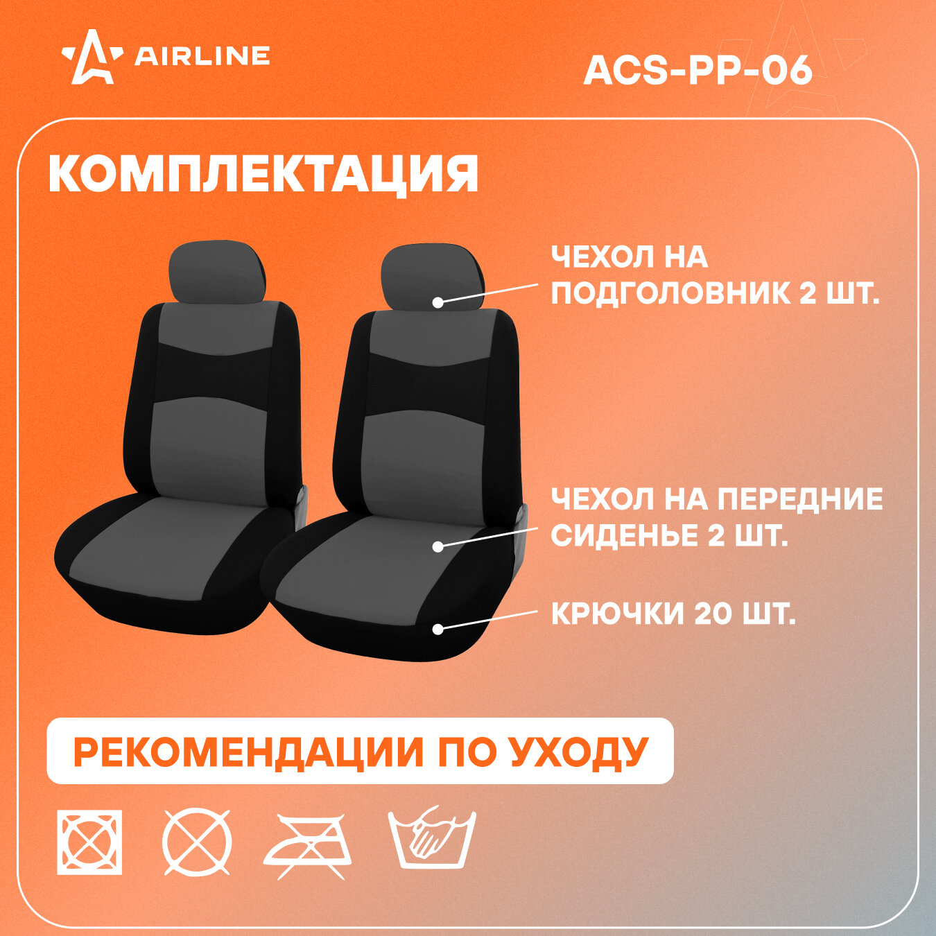 AIRLINE ACS-PP-06 Чехлы для сидений универсал. RS-2 передние 2 шт.(4 предм.) полиэстер черн./сер. (ACS-PP-06)