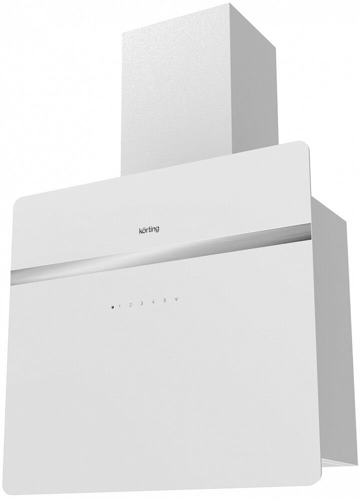 Вертикальная вытяжка Korting KHC 69131 GXW, белая, 60 см, сенсорное управление, 5 скоростей, алюминиевый фильтр