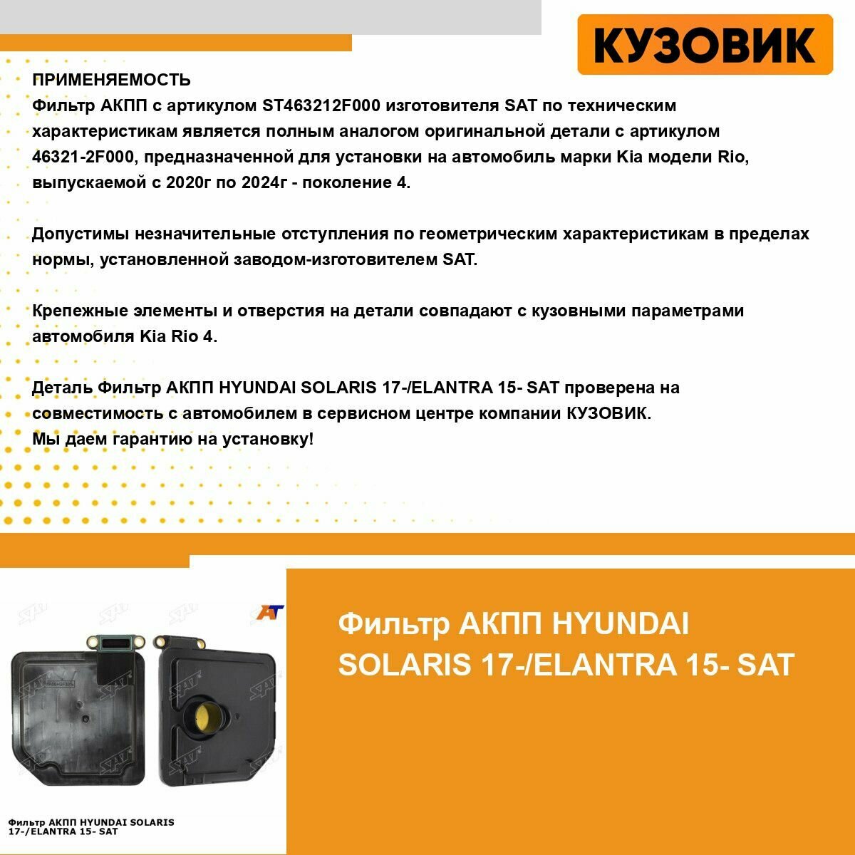 Фильтр АКПП HYUNDAI SOLARIS 17-/ELANTRA 15- Sat ST463212F000