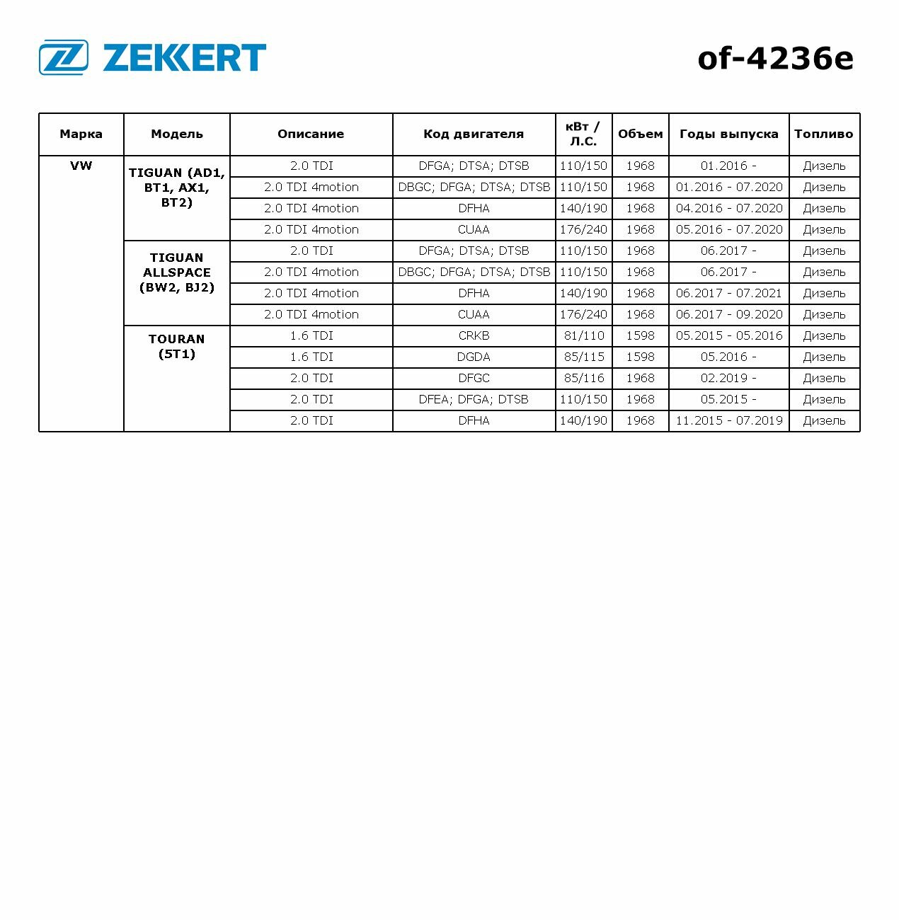 OF4236E ZEKKERT Фильтр масл. Eco VW Polo VI 17- Passat VIII 14- Tiguan I II 10- Audi A6 IV 13- A4 IV V 07- Sk