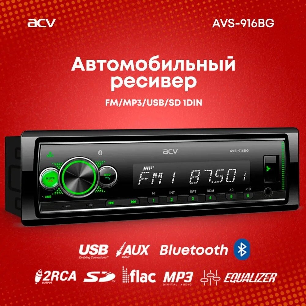 Автомобильный ресивер с Bluetooth, поддержкой ACV RC и ACV Control, зеленая подсветка ACV AVS-916BG