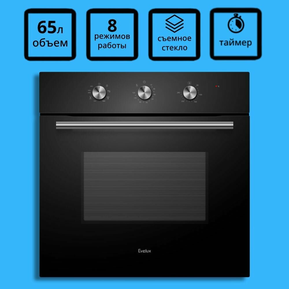 Купить Встраиваемый электрический духовой шкаф "Evelux", черный, 65 литров, с конвекцией и грилем