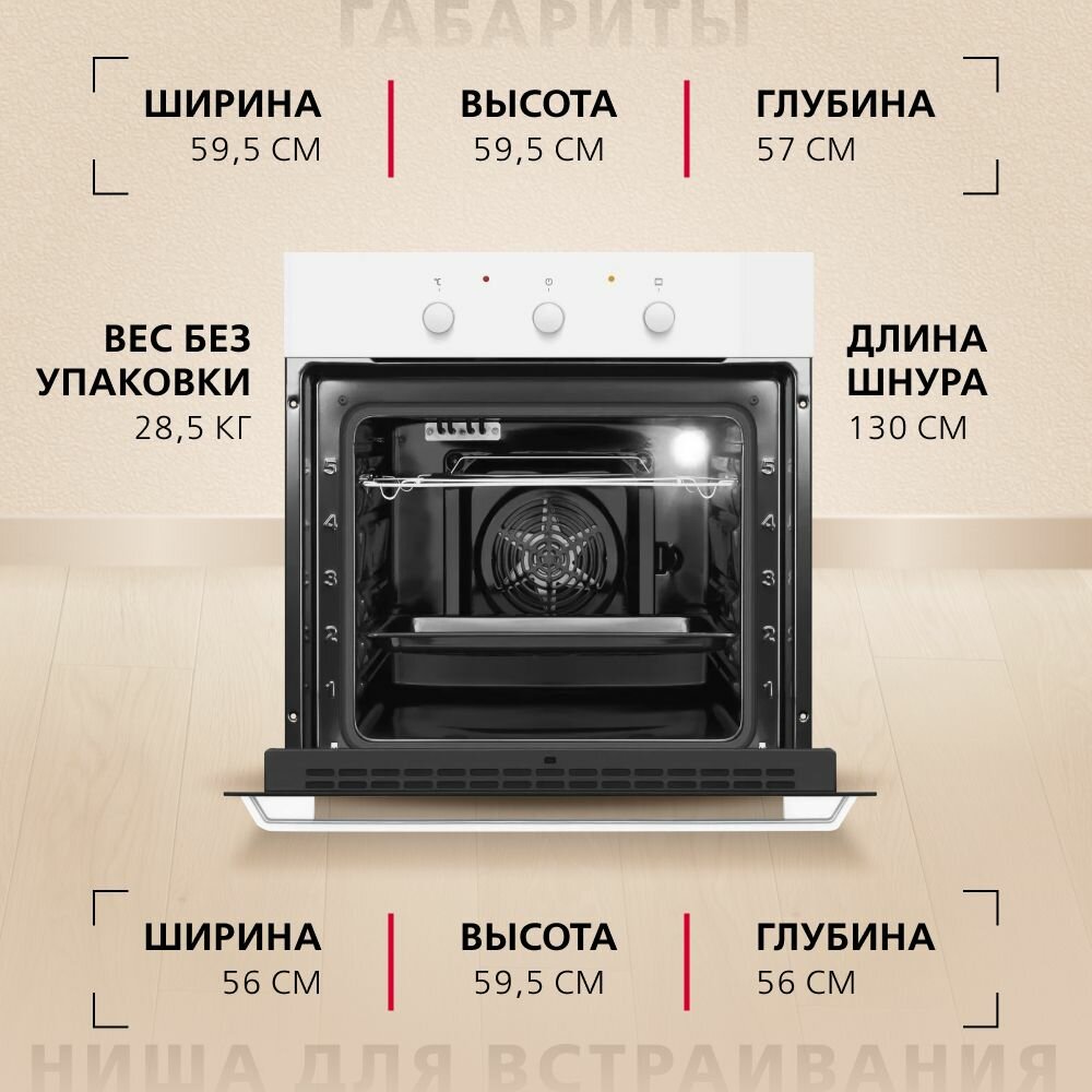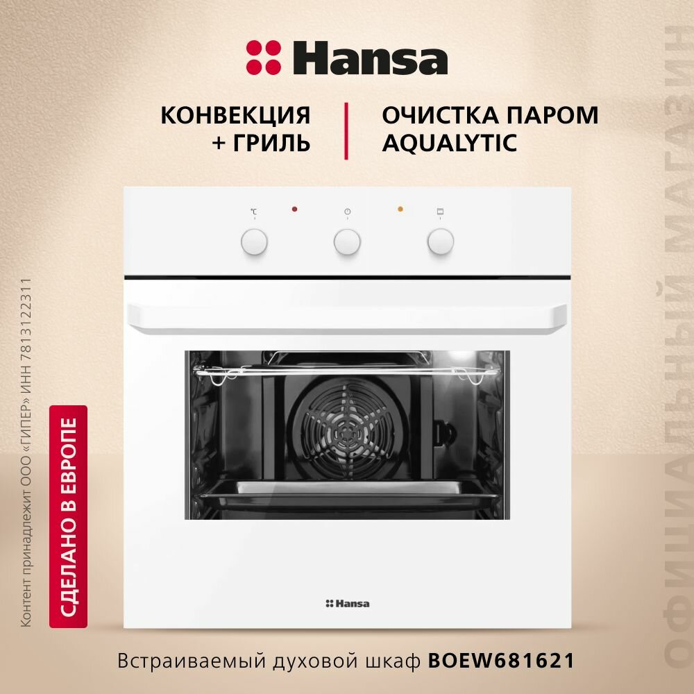 Купить Электрический духовой шкаф Hansa BOEW681621, встраиваемый, 60 см, 62 л, 8 режимов, с таймером, конвекцией, грилем, быстрым нагревом, белый