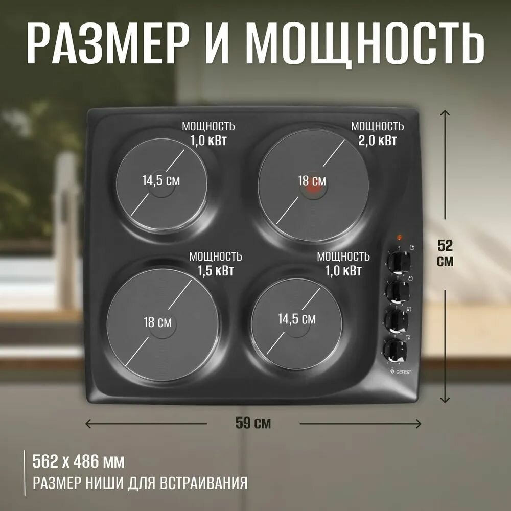 | Размеры конфорок | две конфорки диаметром 14,5 см, две конфорки диаметром 18 см |