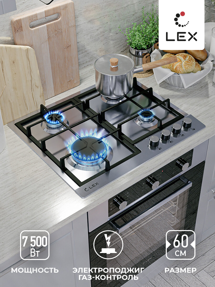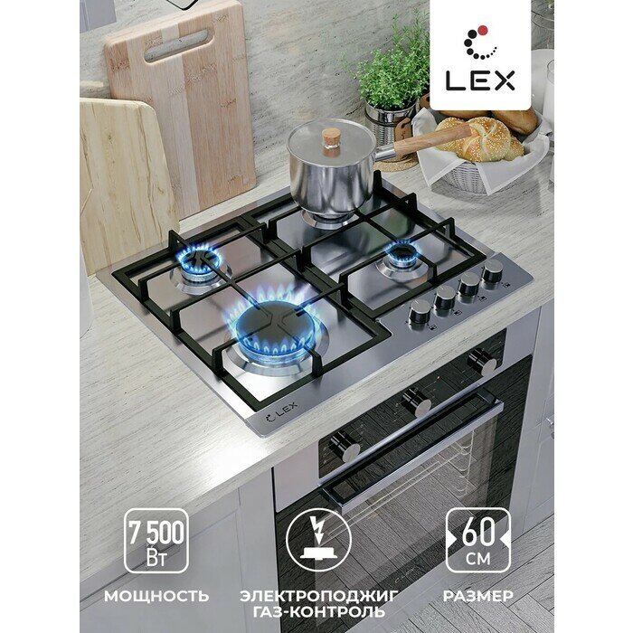 LEX Варочная поверхность LEX GVS 642 IX газовая, нержавеющая сталь