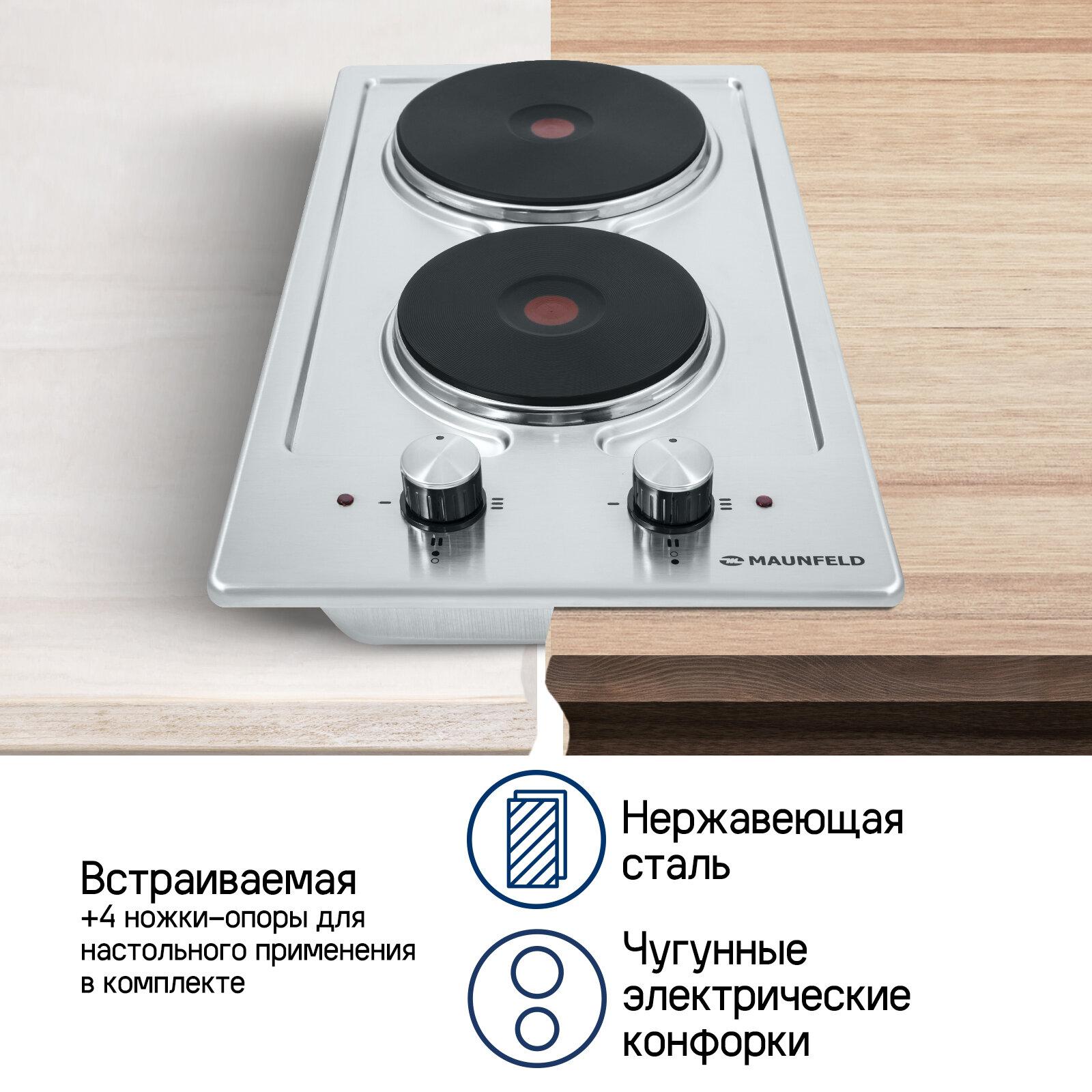 Электрическая варочная панель MAUNFELD EEHS.32.4S, ширина 30 см, две конфорки интересное:
