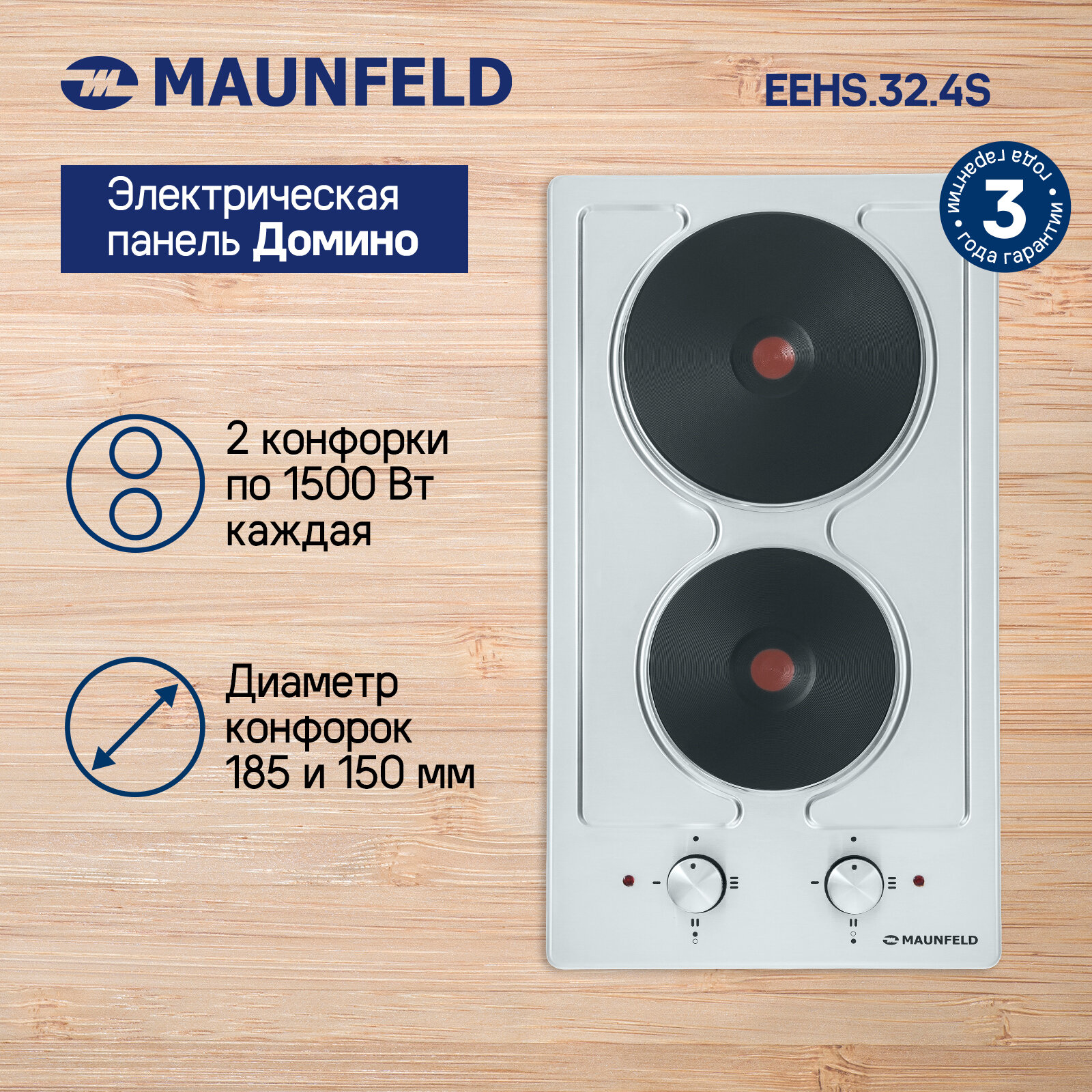 Ниже Вы можете прочитать отзывы на Электрическая варочная панель MAUNFELD EEHS.32.4S, ширина 30 см, две конфорки, ознакомится с подробными характеристиками, посмотреть интересные обзоры и фотографии на Электрическая варочная панель MAUNFELD EEHS.32.4S, ширина 30 см, две конфорки.