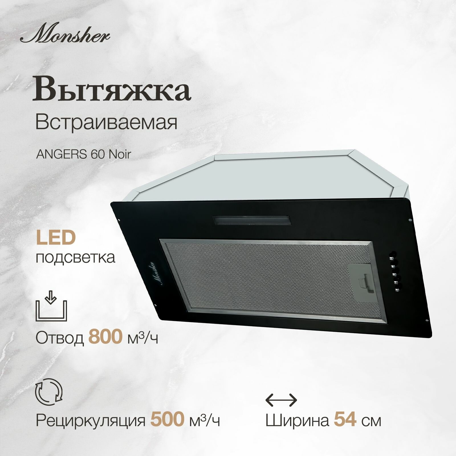 Вытяжка встраиваемая MONSHER ANGERS 60 Noir (Модификация 2024 года)