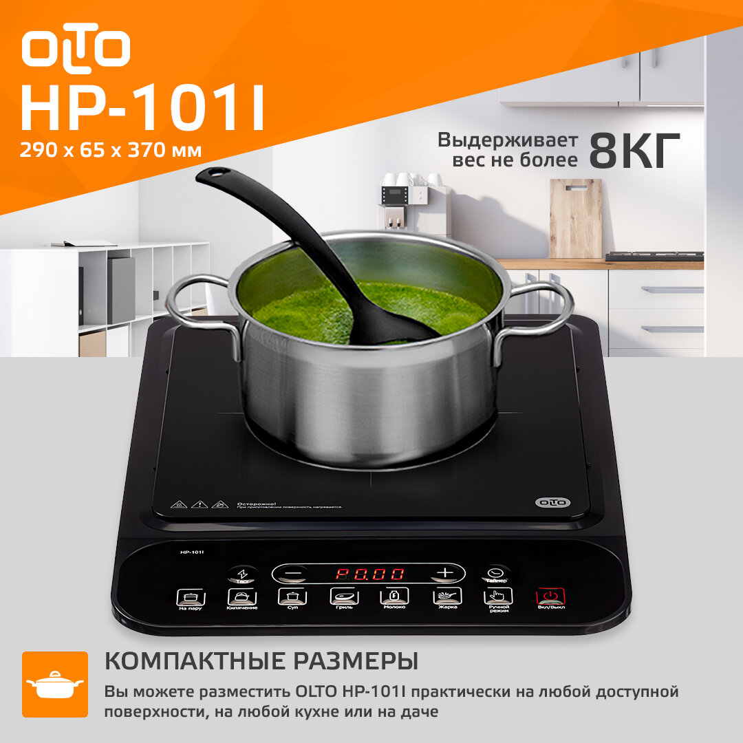 Индукционная плита настольная OLTO HP-101I, мощность 2000 Вт, управление электронное, черная