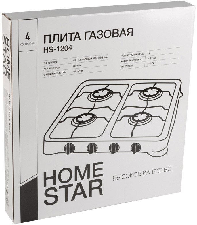 Плита газовая HOMESTAR HS-1204 4-х конфорочная (003701)