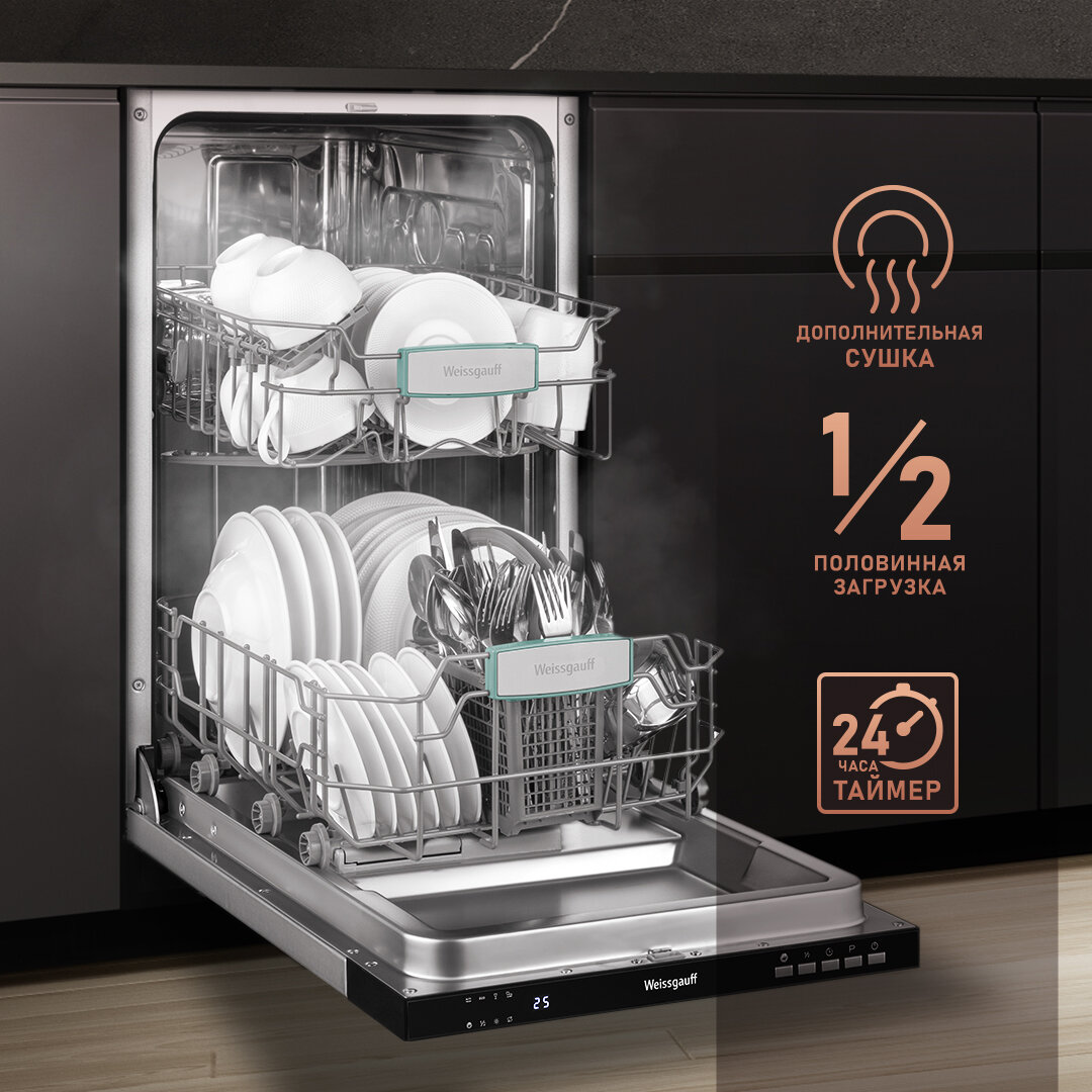 Посудомоечная машина узкая WEISSGAUFF BDW 4134 D, белый