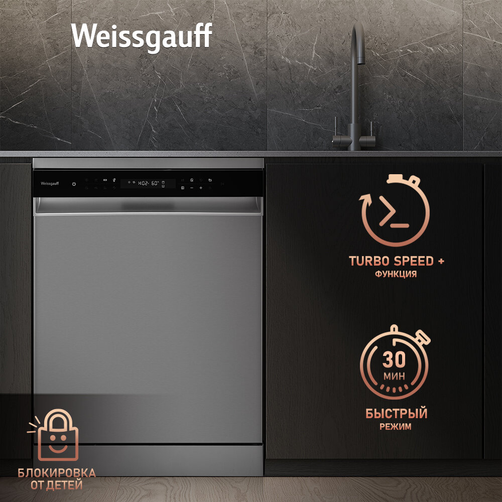 Посудомоечная машина Weissgauff 6138 Inverter Touch Inox, серебристый металлик