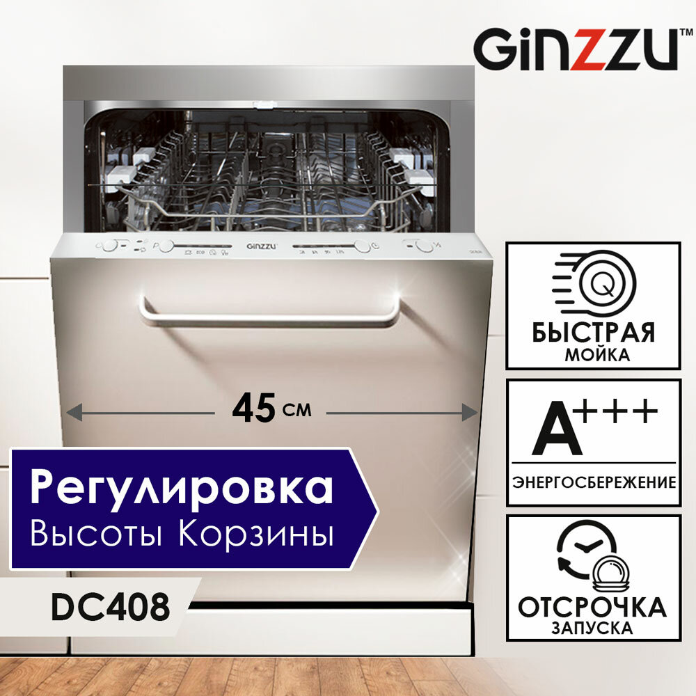 Посудомоечная машина Ginzzu DC408, встраиваемая, 9 комплектов, 4 программы, A++, конденсационная сушка интересное:
