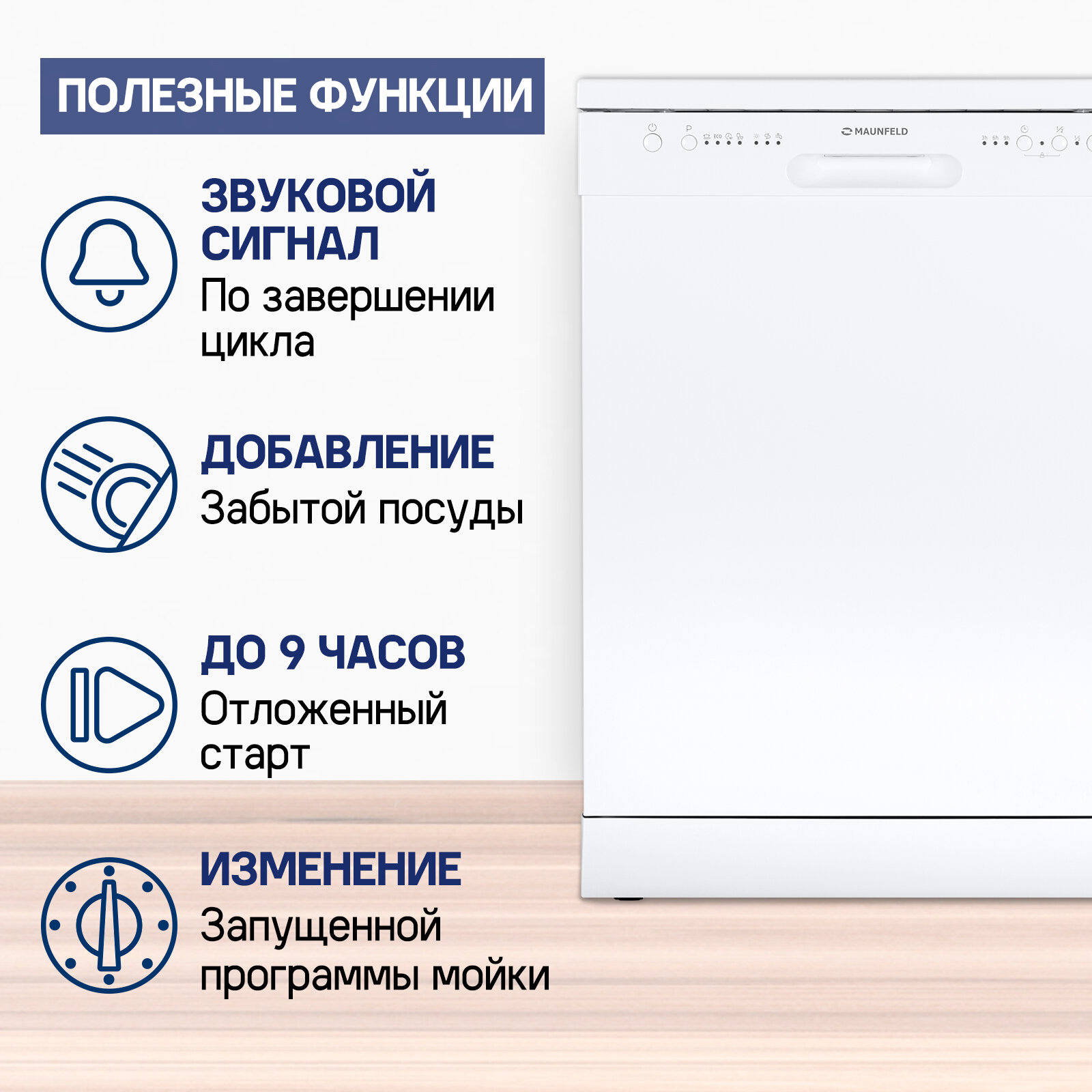 СохранитьПосудомоечная машина MAUNFELD MWF12I отдельностоящая полноразмерная 60 см, 12 комплектов, 4 программы, 2 корзины, половинная загрузка, режим быстрой мойки интересное: