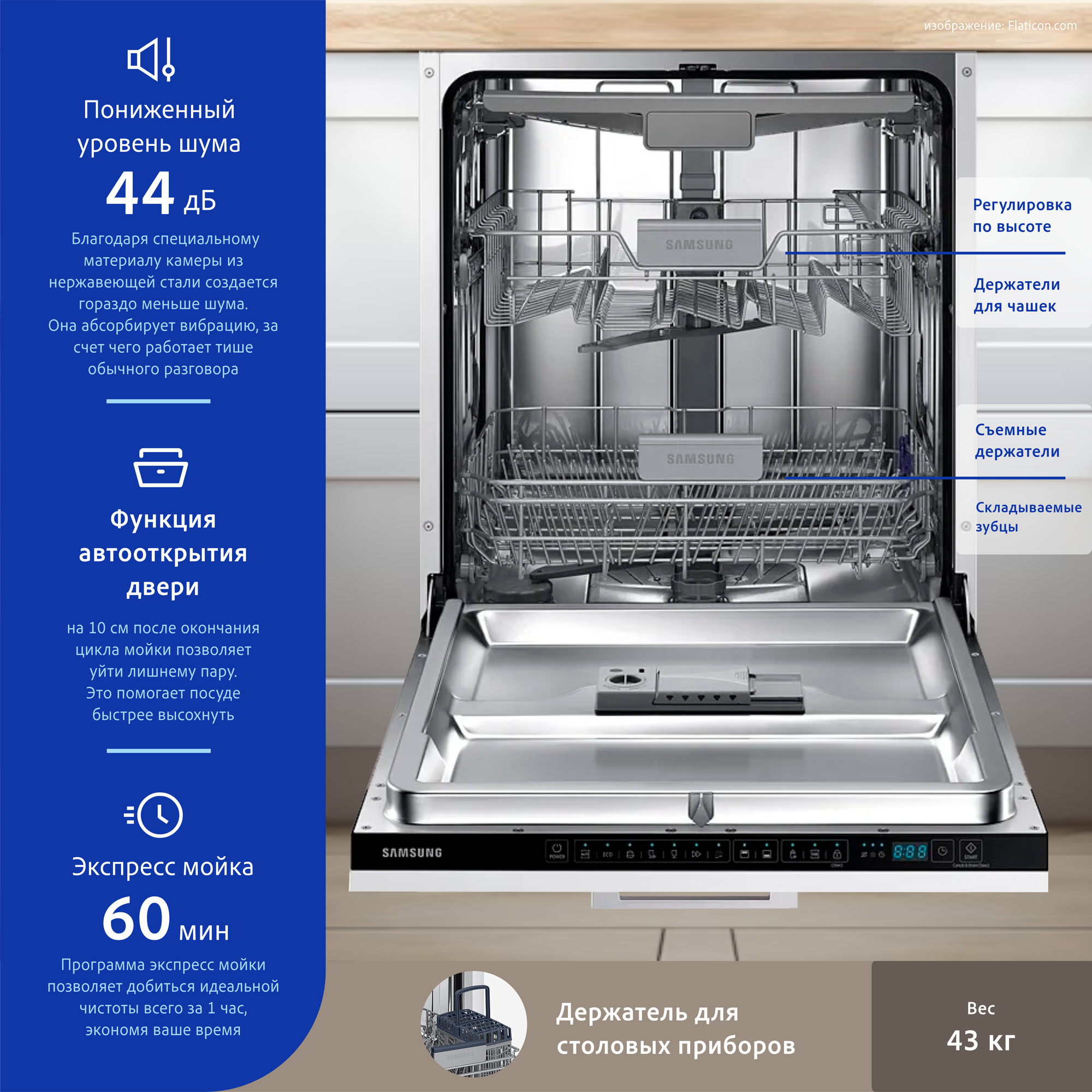 СохранитьВстраиваемая посудомоечная машина SAMSUNG 60CM DW60M6050BB/WT, белый интересное: