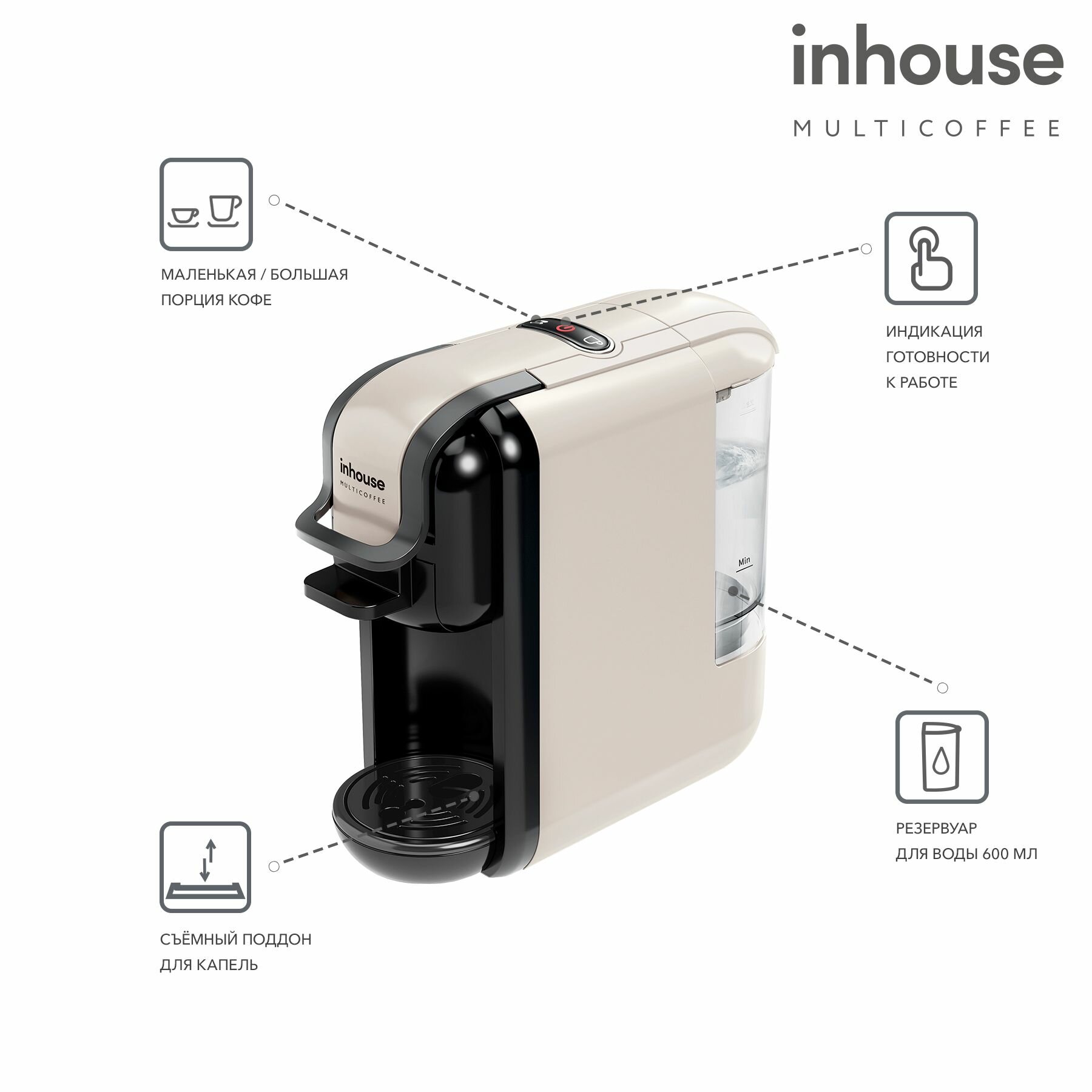 Кофемашина капсульная и рожковая Multicoffee inhouse, 2в1, автоотключение, бежевая интересное: