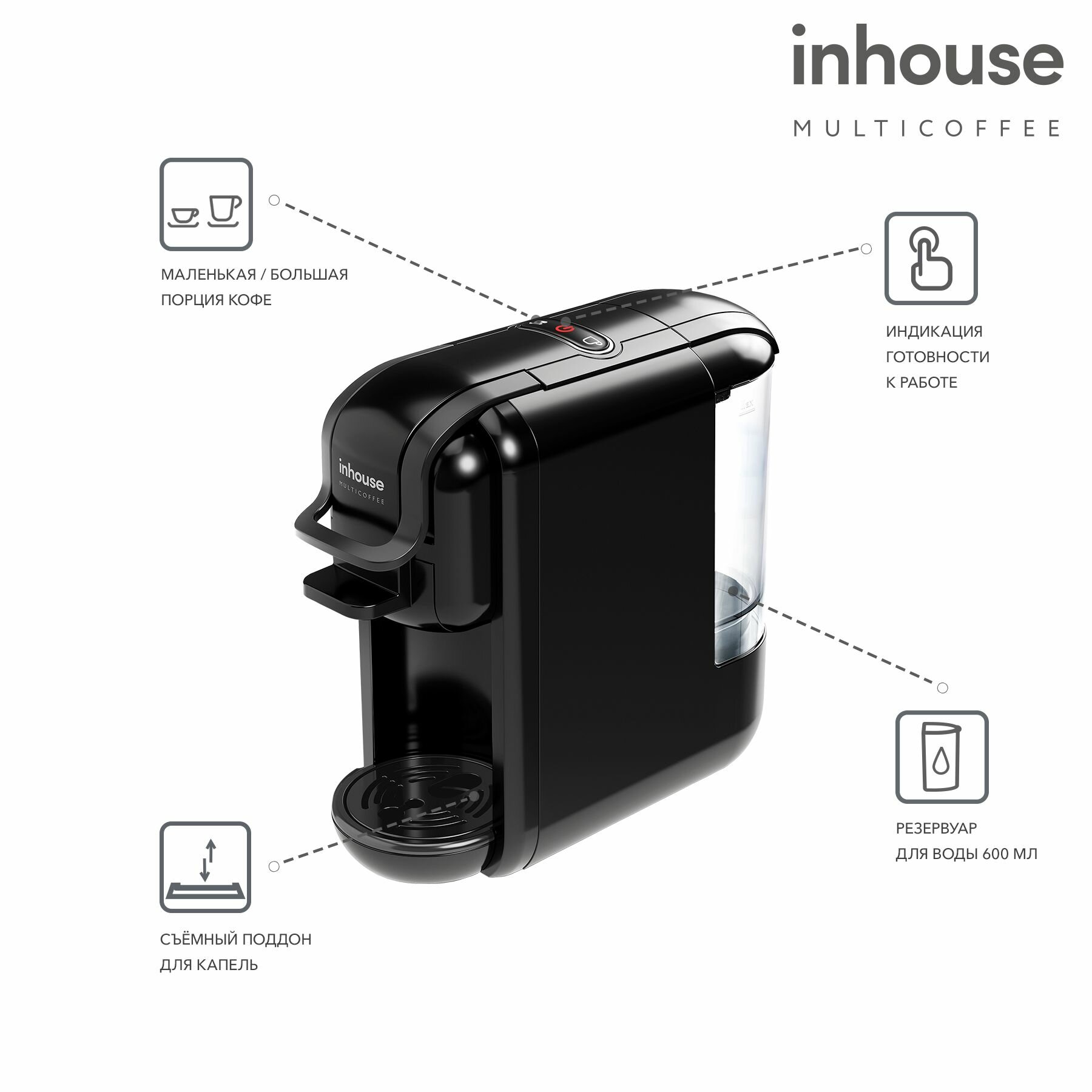 Кофемашина капсульная и рожковая Multicoffee inhouse, 2в1, автоотключение, чёрный интересное: