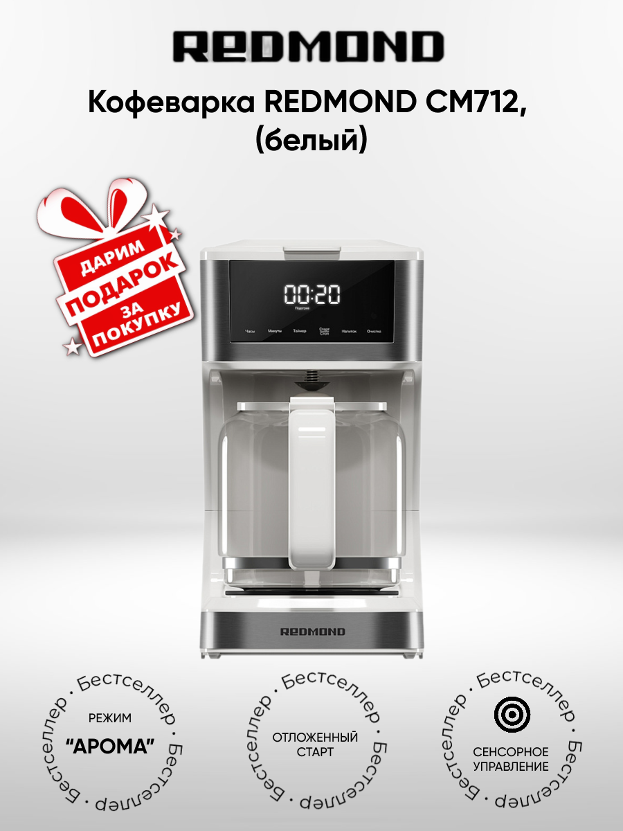 Кофеварка капельная REDMOND CM712, кувшин 1,7 л, сенсорное управление, автоподогрев, отложенный старт, режим айс-кофе