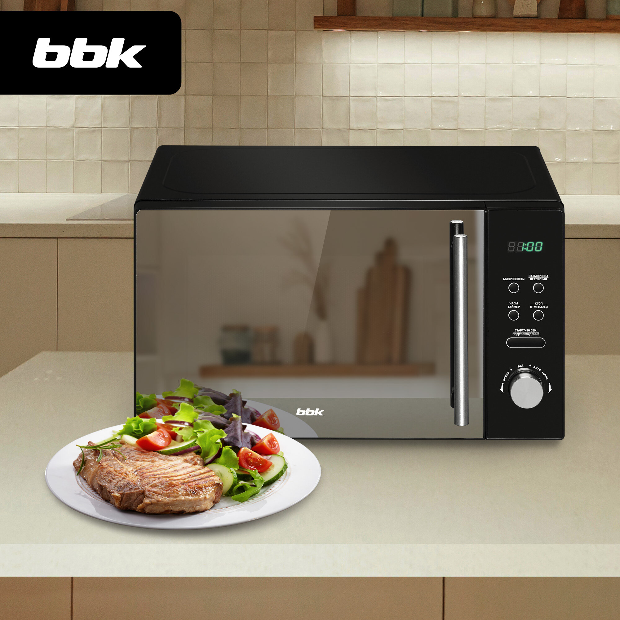 СохранитьМикроволновая печь BBK 20MWS-722T/B-M черный, объем 20 л, мощность 700 Вт интересное: