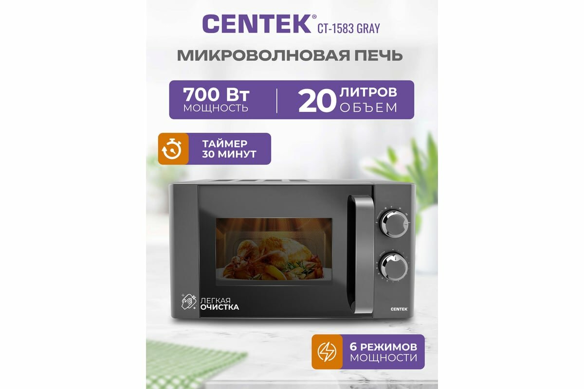 Микроволновая печь CENTEK CT-1583 Gray-серый /700Вт, 20л, 6 режимов