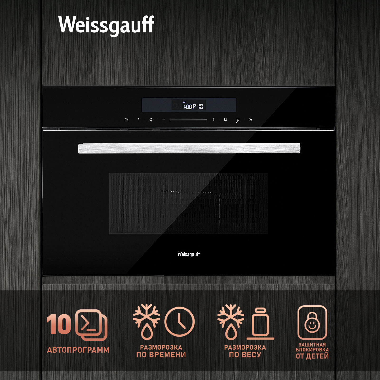 Встраиваемая микроволновая печь Weissgauff BMWO-341 DB 3 года гарантии, Объем 34 литра, Блокировка от детей, Сенсорный блок управления интересное:
