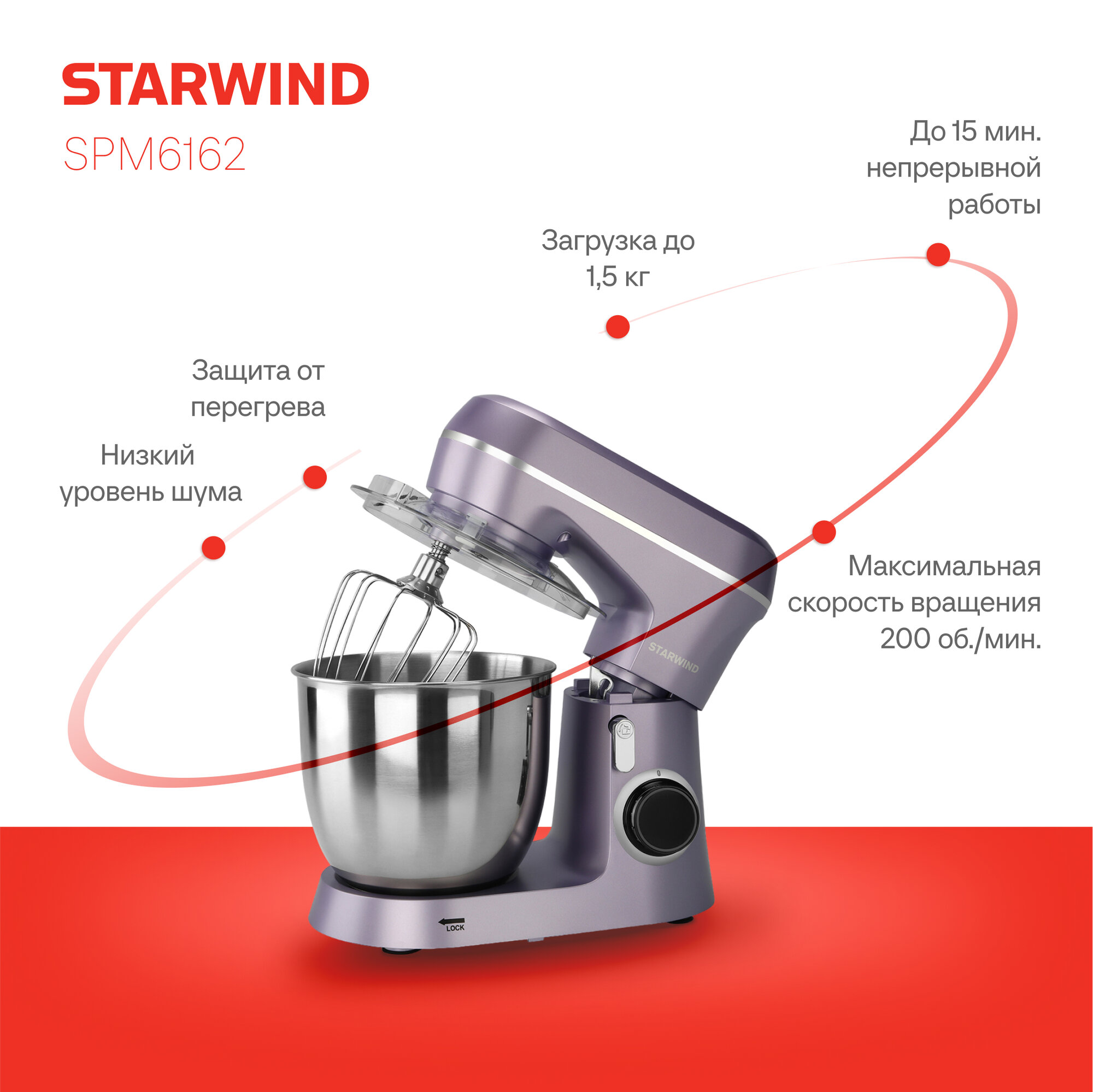 Миксер планетарный Starwind SPM6162 лавандовый