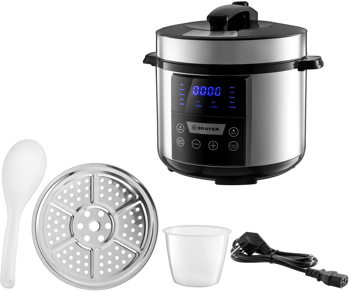 Мультиварка-скороварка BRAYER BR2400, 900Вт, 5л, 12 программ, серебро