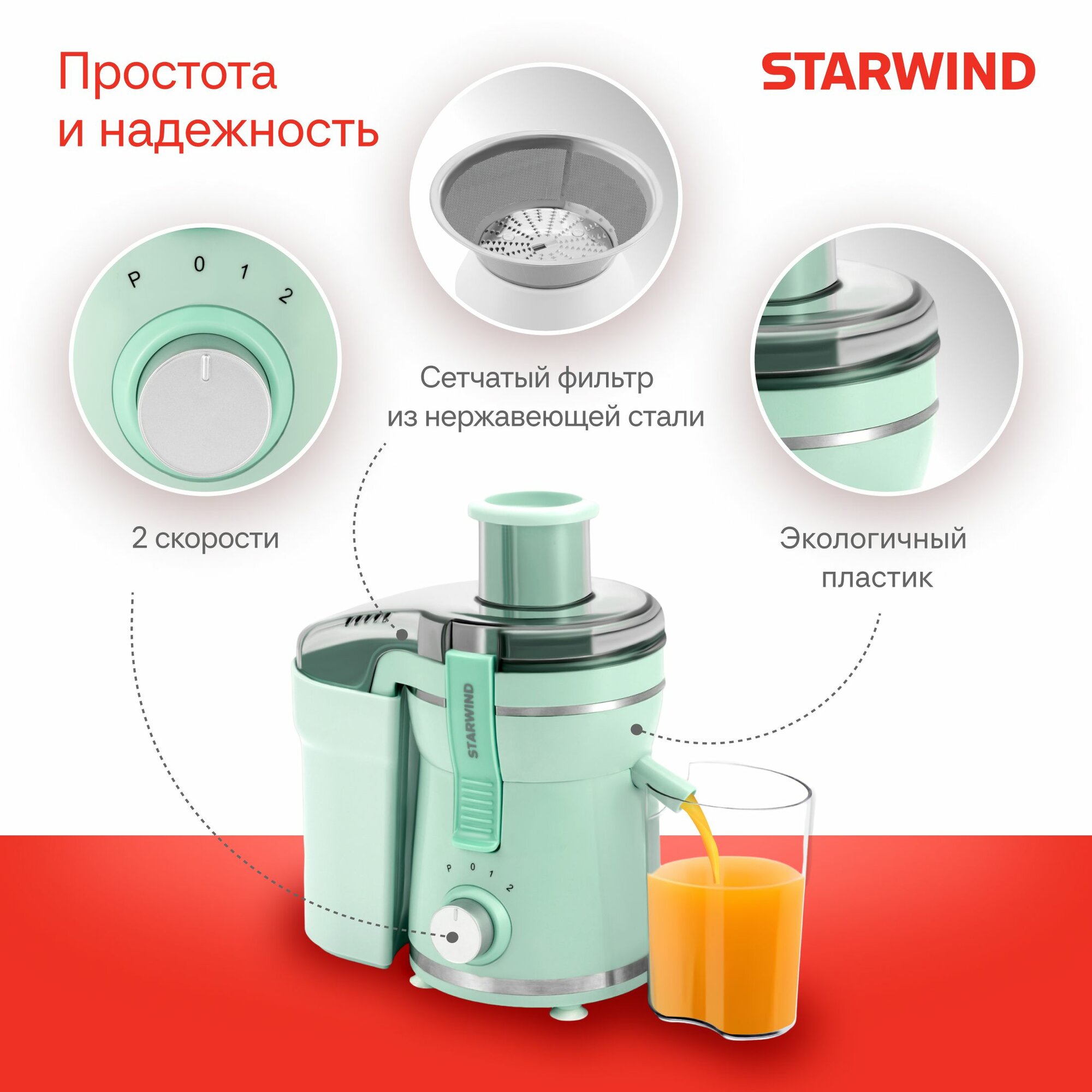 Две скорости Небольшая цена Большой стакан для мякоти |