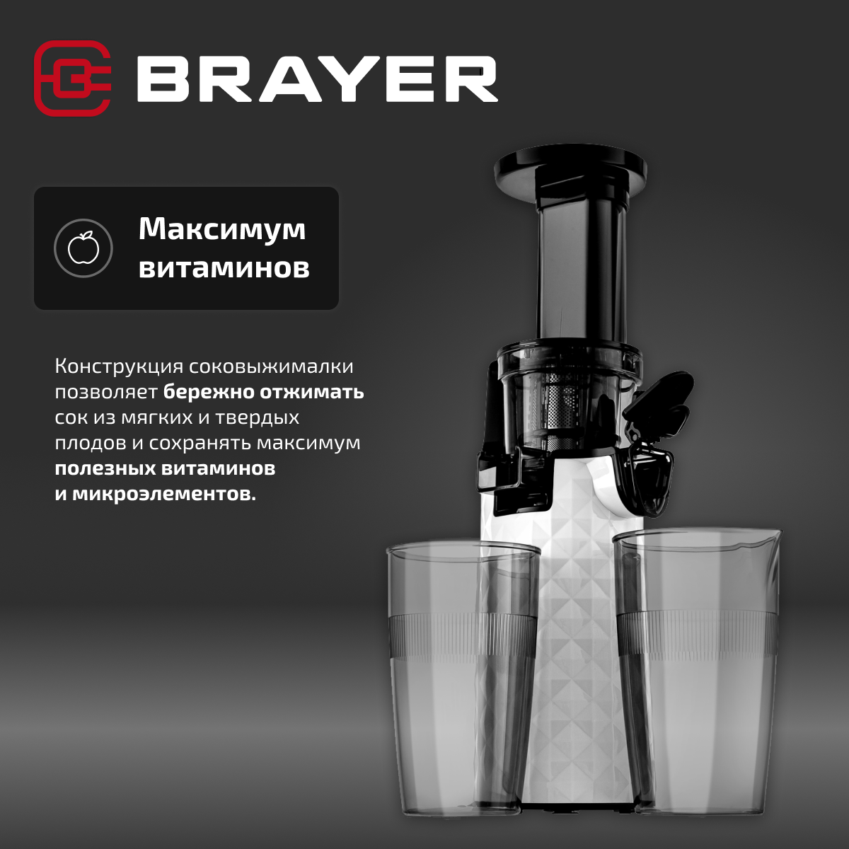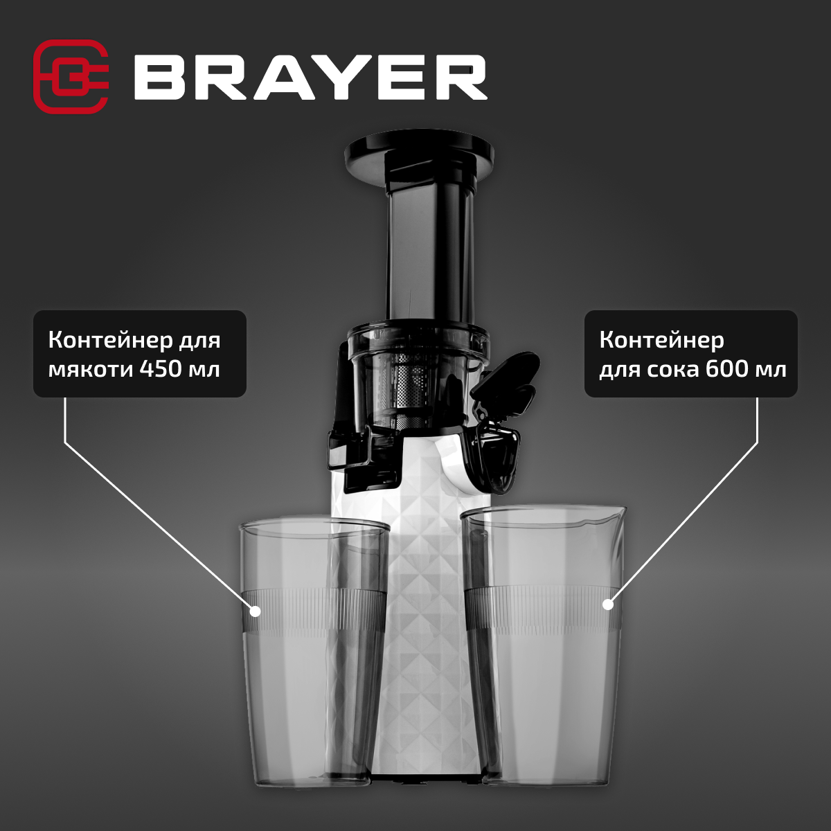 Соковыжималка шнековая BRAYER BR1701, 130 Вт, функция реверс, контейнер для сока 0,6 л