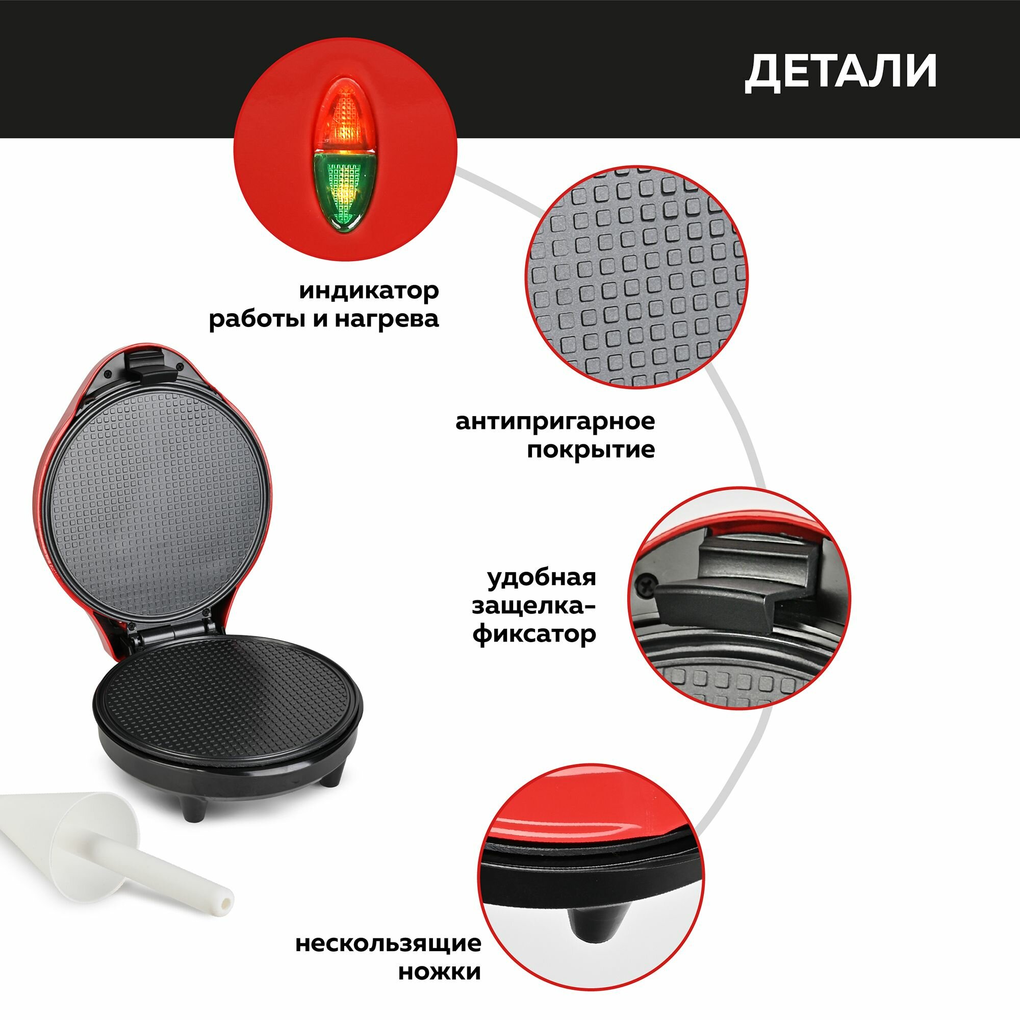 Хорошая вафельница, тонкие вафли получаются отличные. Есть конус для сворачивания их в рожок.