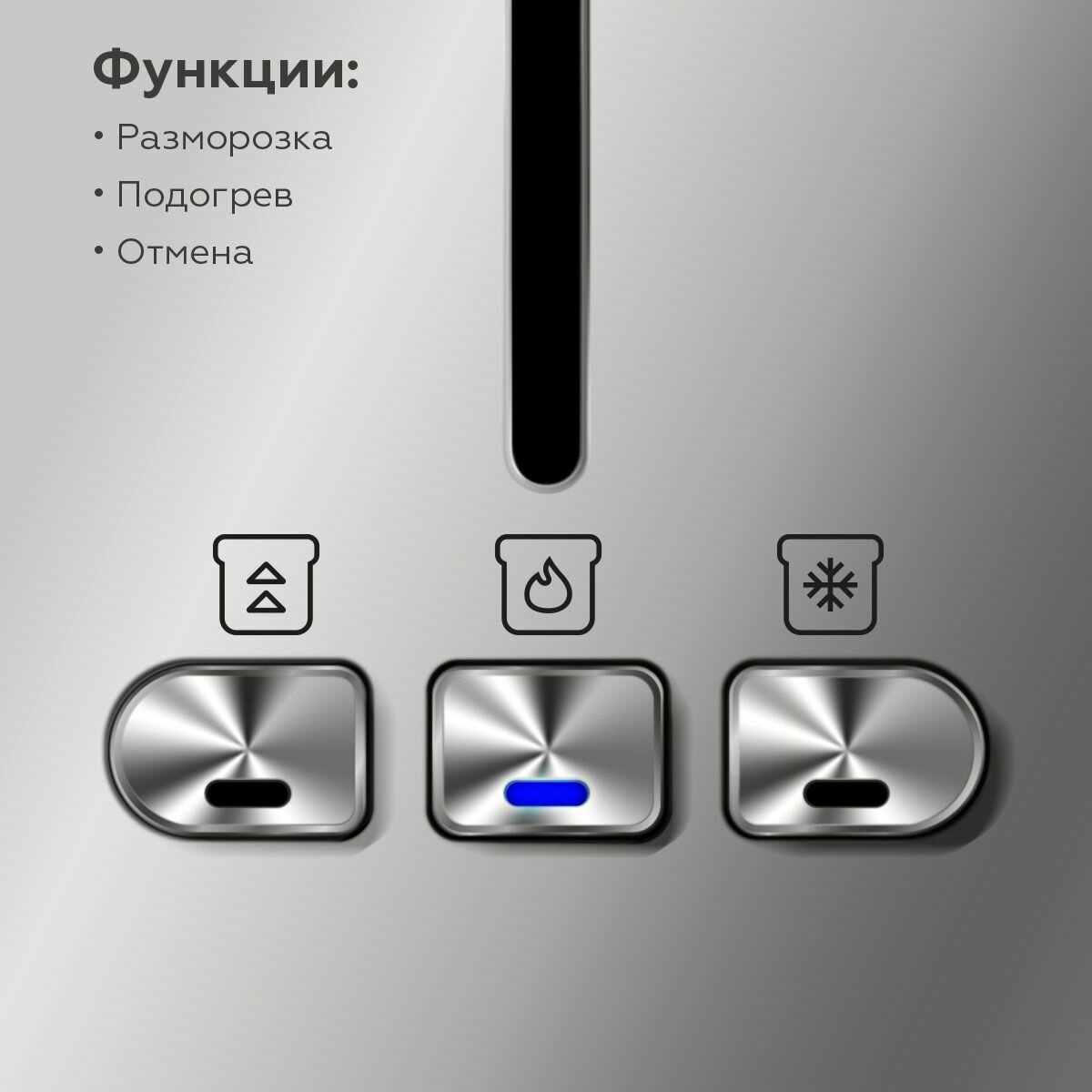 Тостер BQ T1009, 800 Вт, 7 режимов прожарки, 2 тоста, разморозка, серебристый