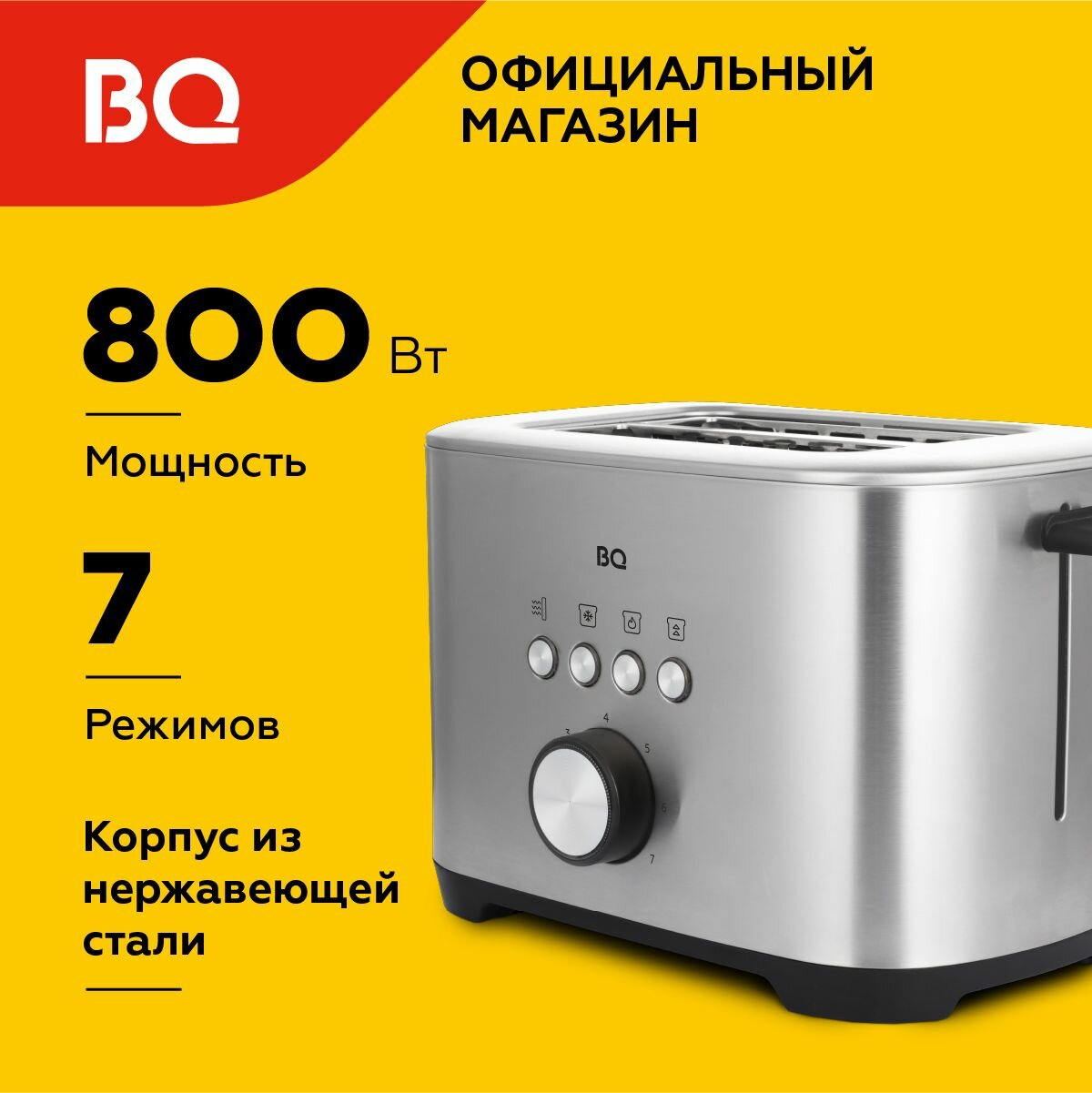 Тостер BQ (БИ-КЬЮ) T1009, 800 Вт, 2 тоста, 7 режимов, металлический, 86197956