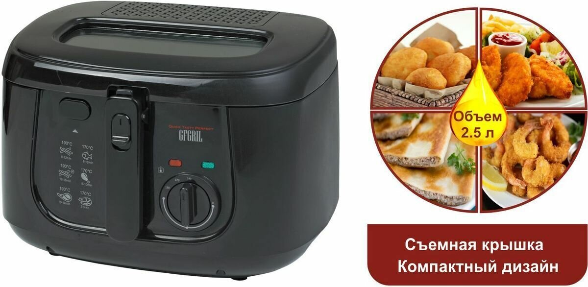 Ниже Вы можете прочитать отзывы на Фритюрница электрическая со съемной корзиной GFGRIL GFF-05 Compact, 2.5 л., 1800 Вт, ознакомится с подробными характеристиками, посмотреть интересные обзоры и фотографии на Фритюрница электрическая со съемной корзиной GFGRIL GFF-05 Compact, 2.5 л., 1800 Вт.