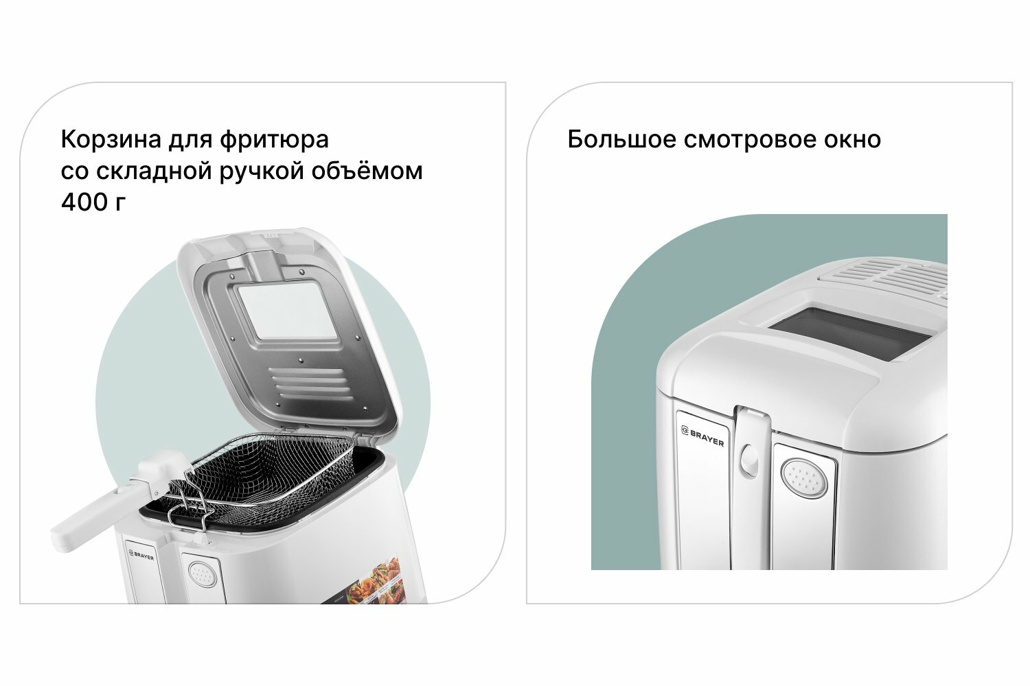 Фритюрница 2,5 л со съемной корзиной,1800 Вт BRAYER BR2832WH, пластик, цвет белый интересное: